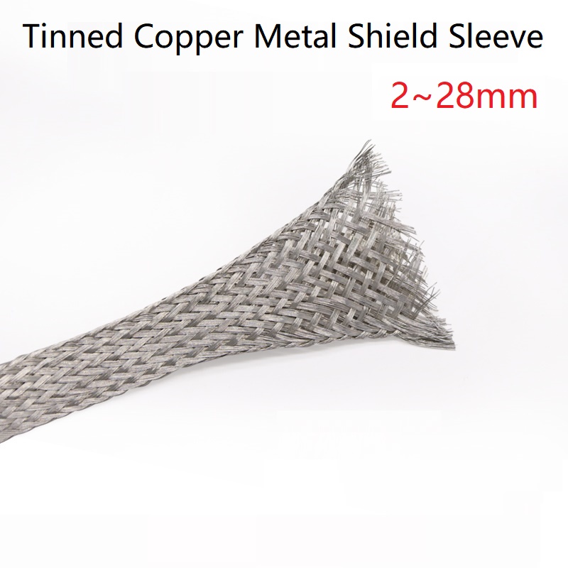 2~28mm Tinned Copper Braided Sleeve Expandable Metal Sheath Screening Signal Wire Cable Shielded Net Power Cord Audio Line Anti-interference-1/2M