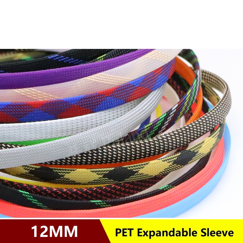 5M 12mm Braided Expandable Sleeve PET Tight Wire Wrap High Density Insulated Cable Harness Line Protector Cover Sheath