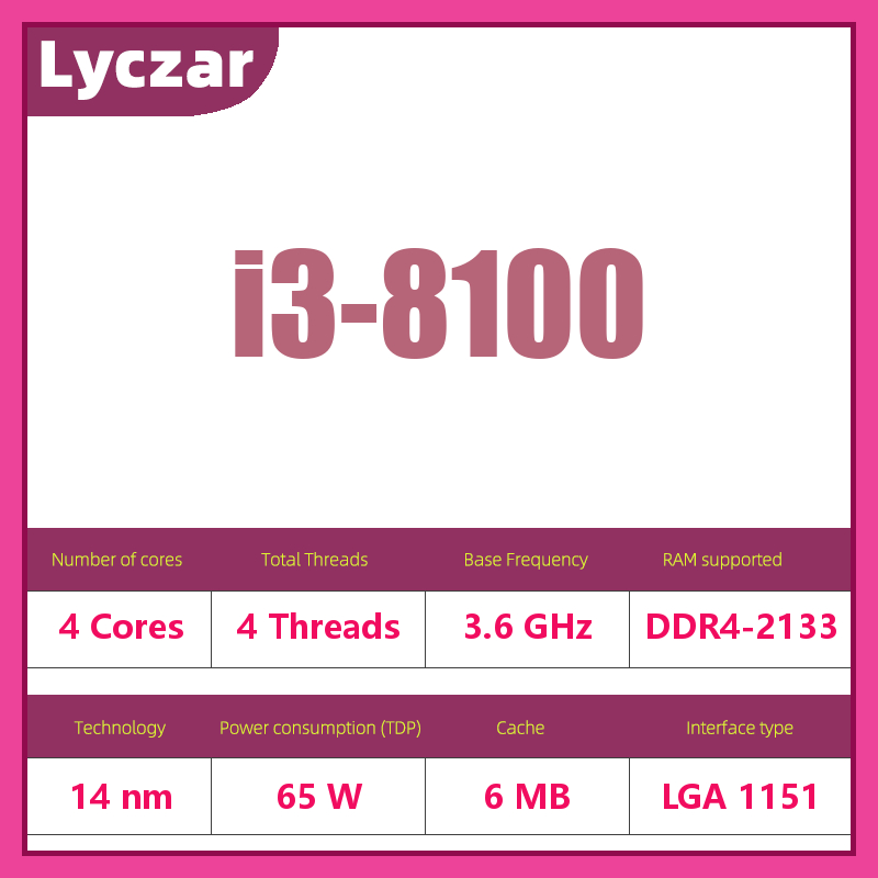 Intel Core i3 8100 Processor LGA 1151 3.6GHz 6M Cache Quad-Core 65W Lyczar Desktop CPU