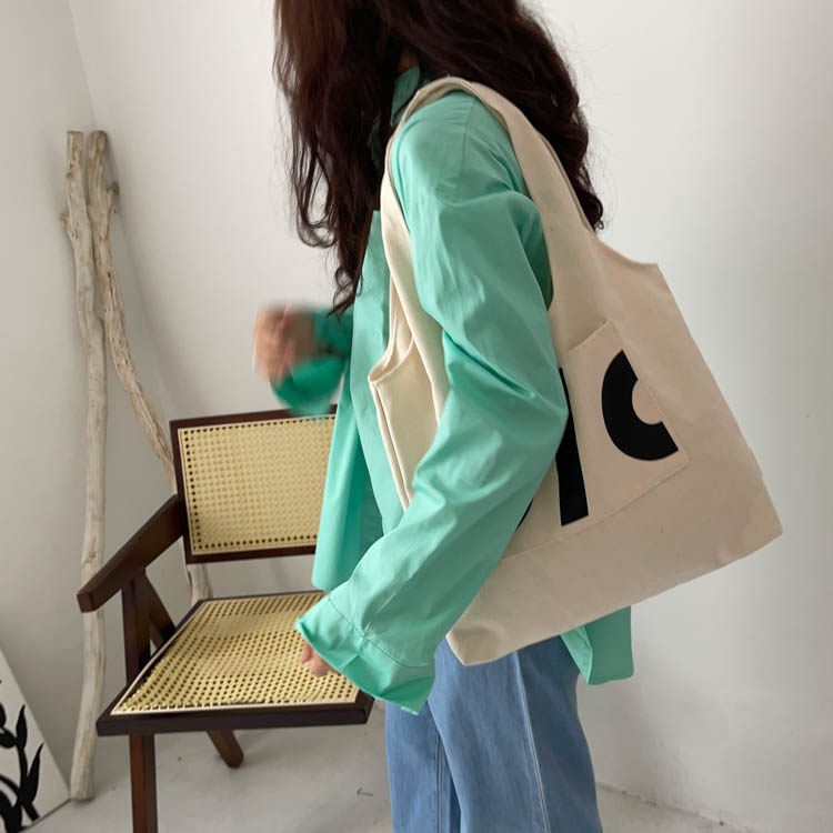 Crossbody shoulder bag for women canvas tote bag letters Japan and South Korea tote bag large capacity