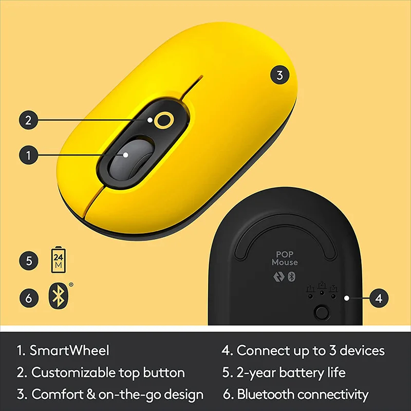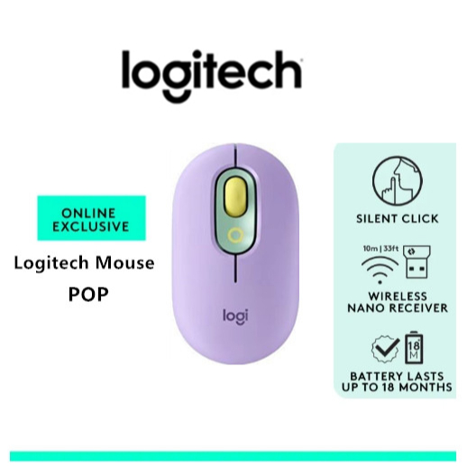 Logitech Pop Mouse Wireless Bluetooth Mouse Office Home Mice Laptop Mouse 2.4G USB Multi Device.