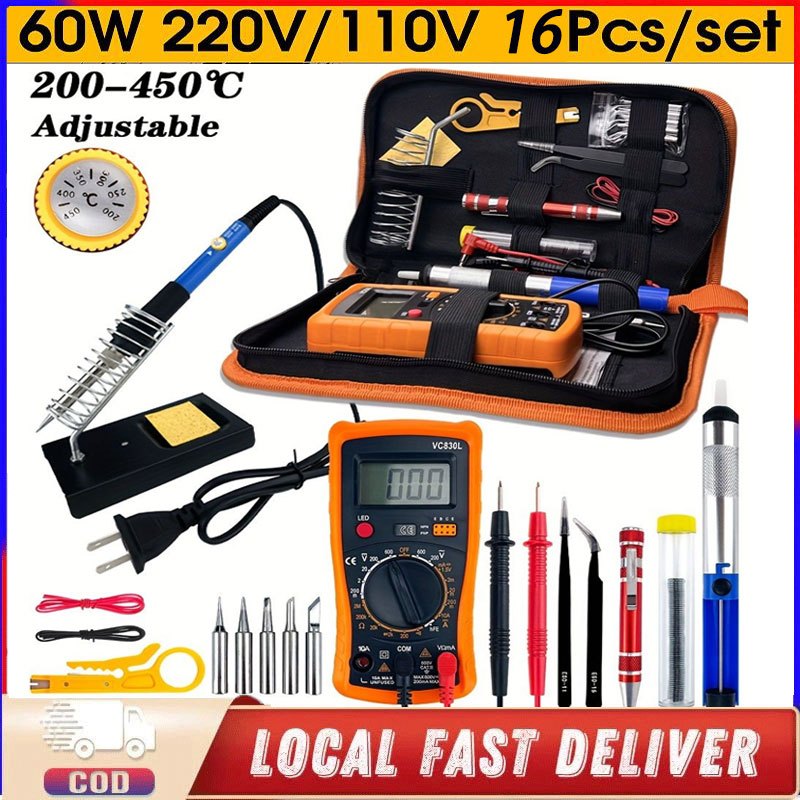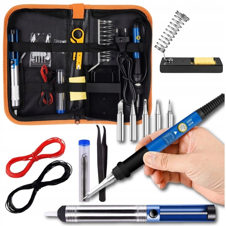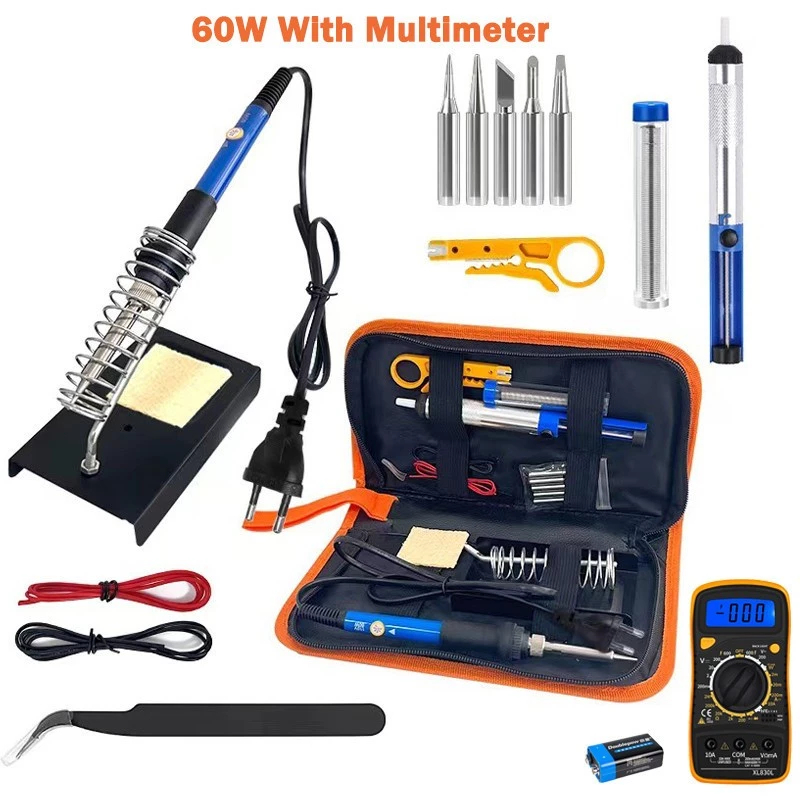 60W Electric Soldering Iron Kit with Adjustable Temperature and Rapid Ceramic Heating 15-in-1 set