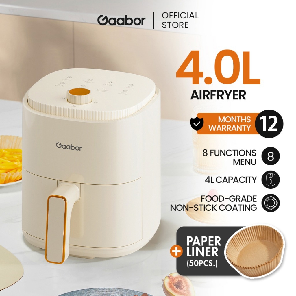 Gaabor Air Fryer Multi Functional Healthy Cooking Non-Stick 8 Menus 4L Black /White With Oil Paper