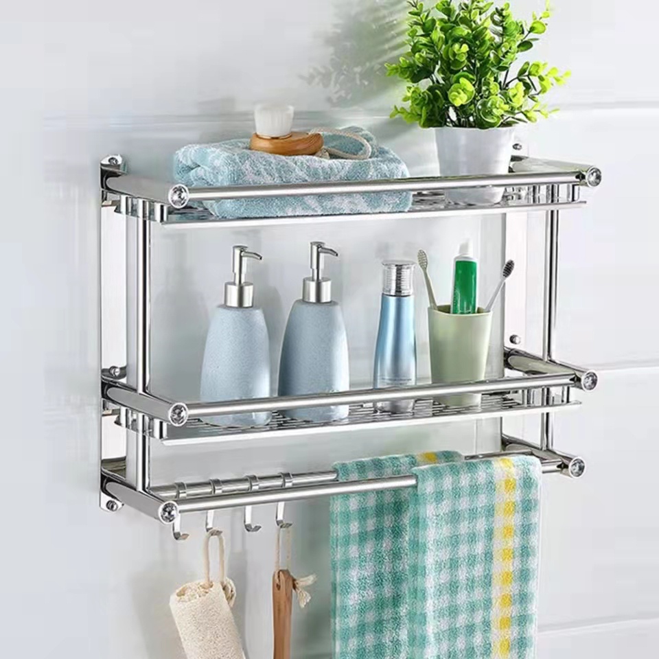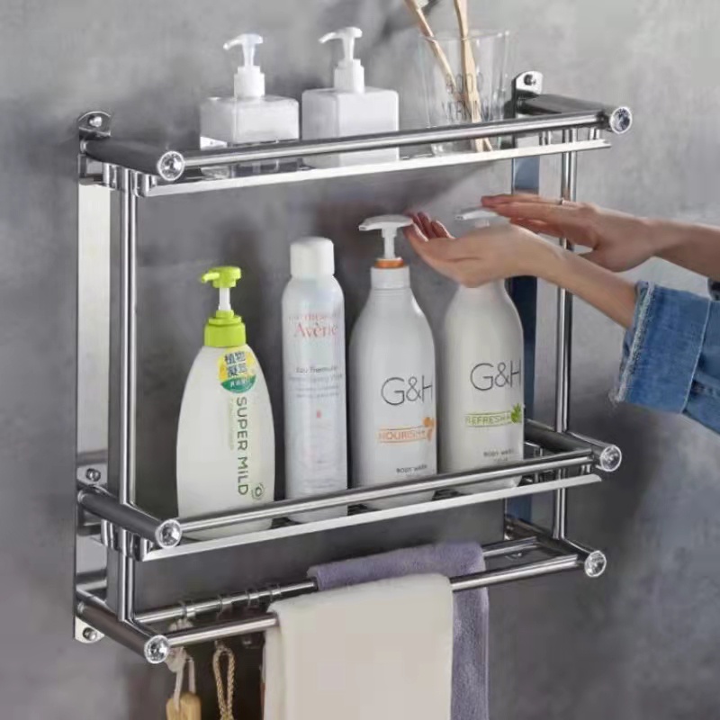 New stainless steel bathroom towel rack toilet bathroom shelf decorative tray wall-mounted shelf