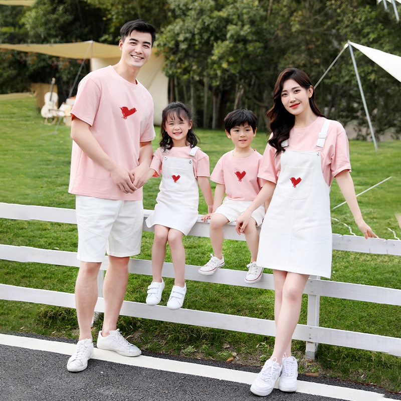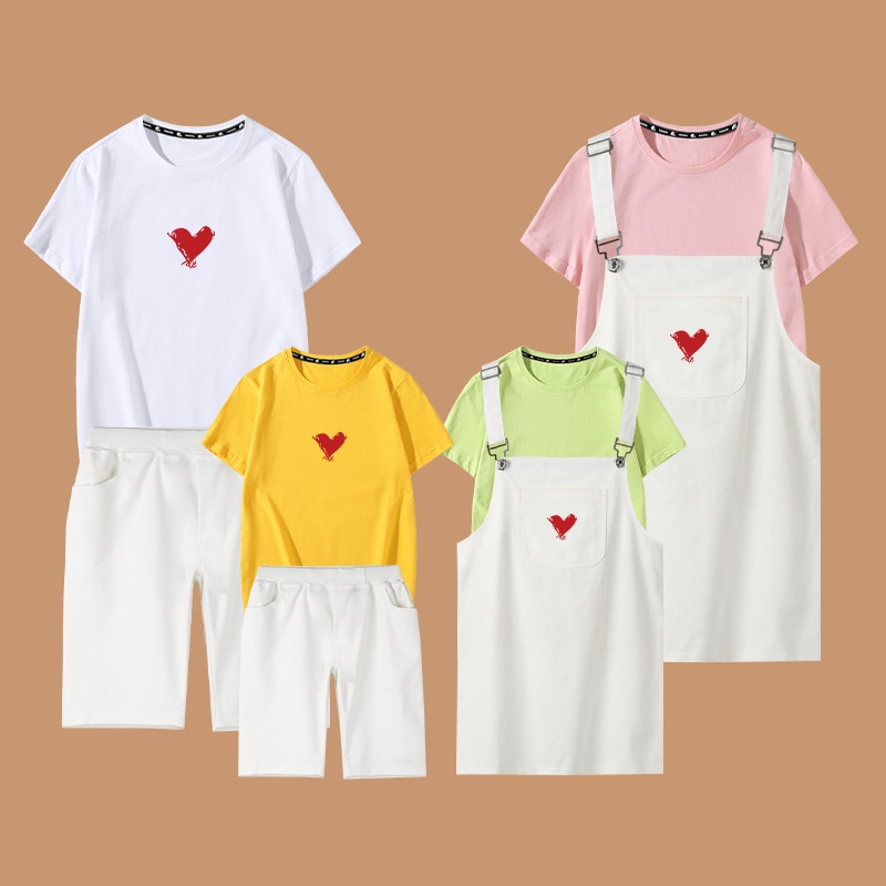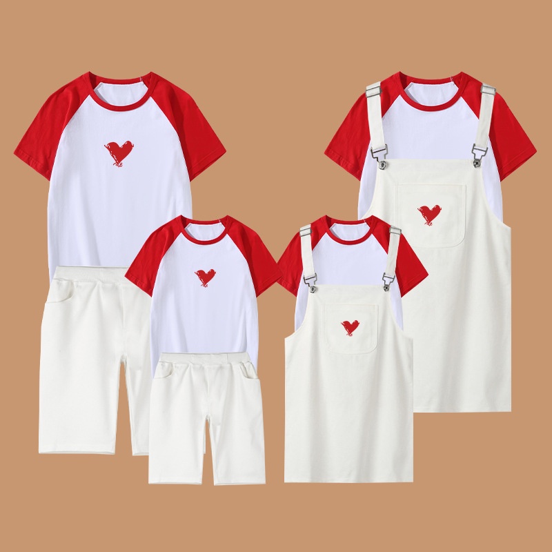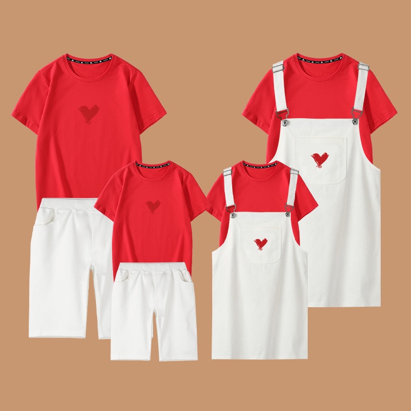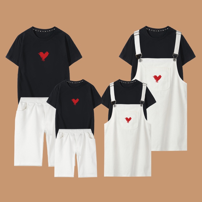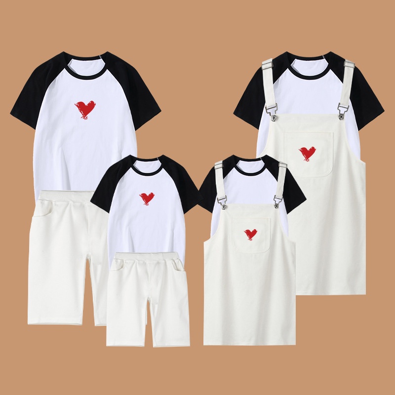 2 Pieces Set Women Shirt + Jumpsuit Men t-shirt + Short Pants Girl Boy Family Matching Outfit Couple
