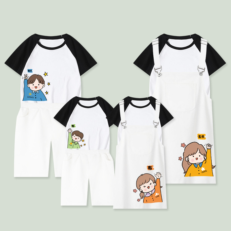 Set Women Shirt + Jumpsuit Men Shirt + Short Pants Girl Boy Beach Family Matching Outfits Cotton