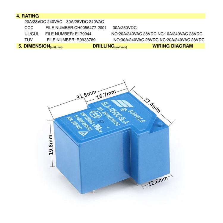 Power Relay SPDT SLA-05V 5V 12V 24V 4Pin 6Pin PCB Relay 30A New Original