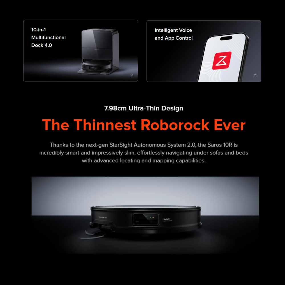 Roborock Saros 10R Robot Vacuum Cleaner Mopping Self-Cleaning & Drying Dock 3D ToF LiDAR Navigation