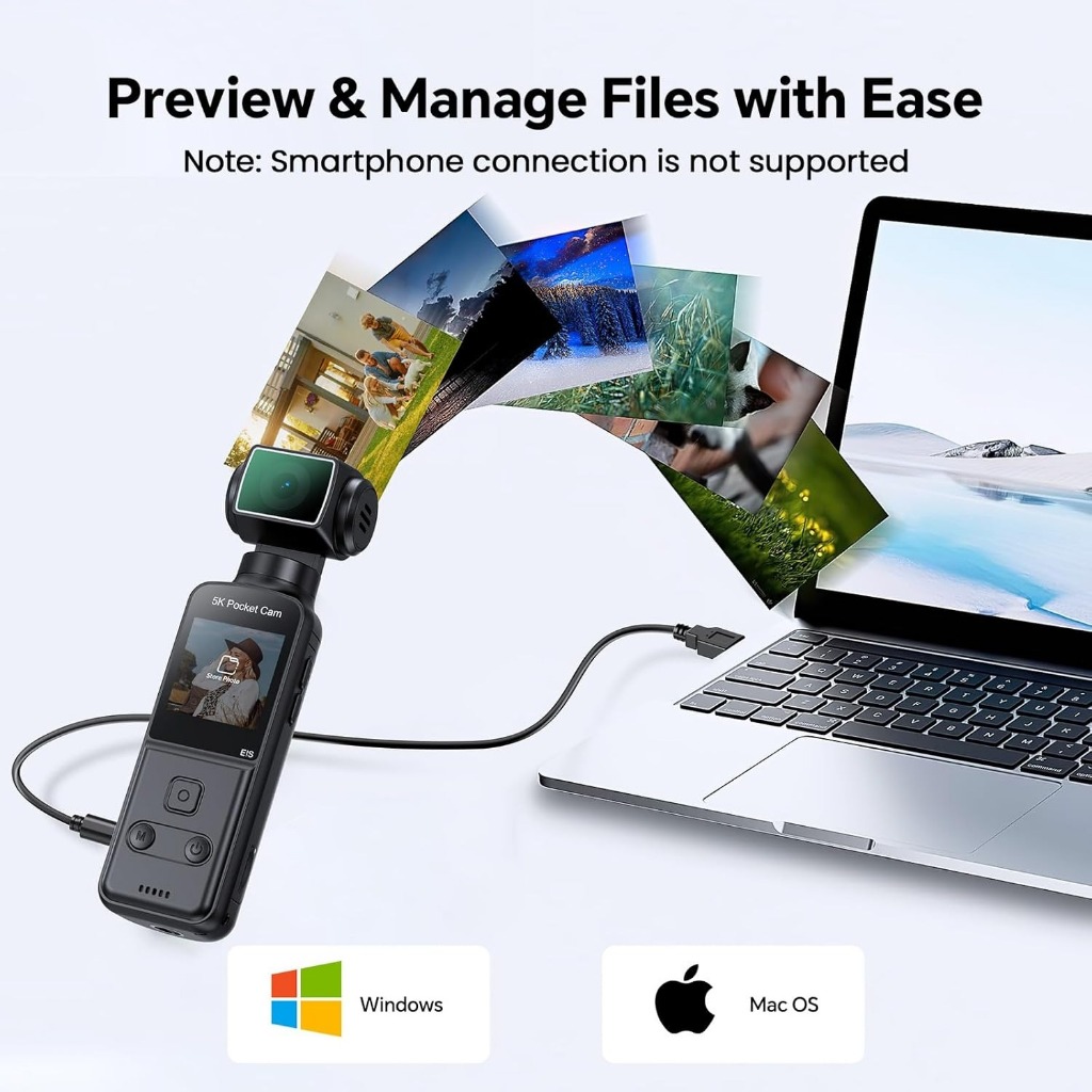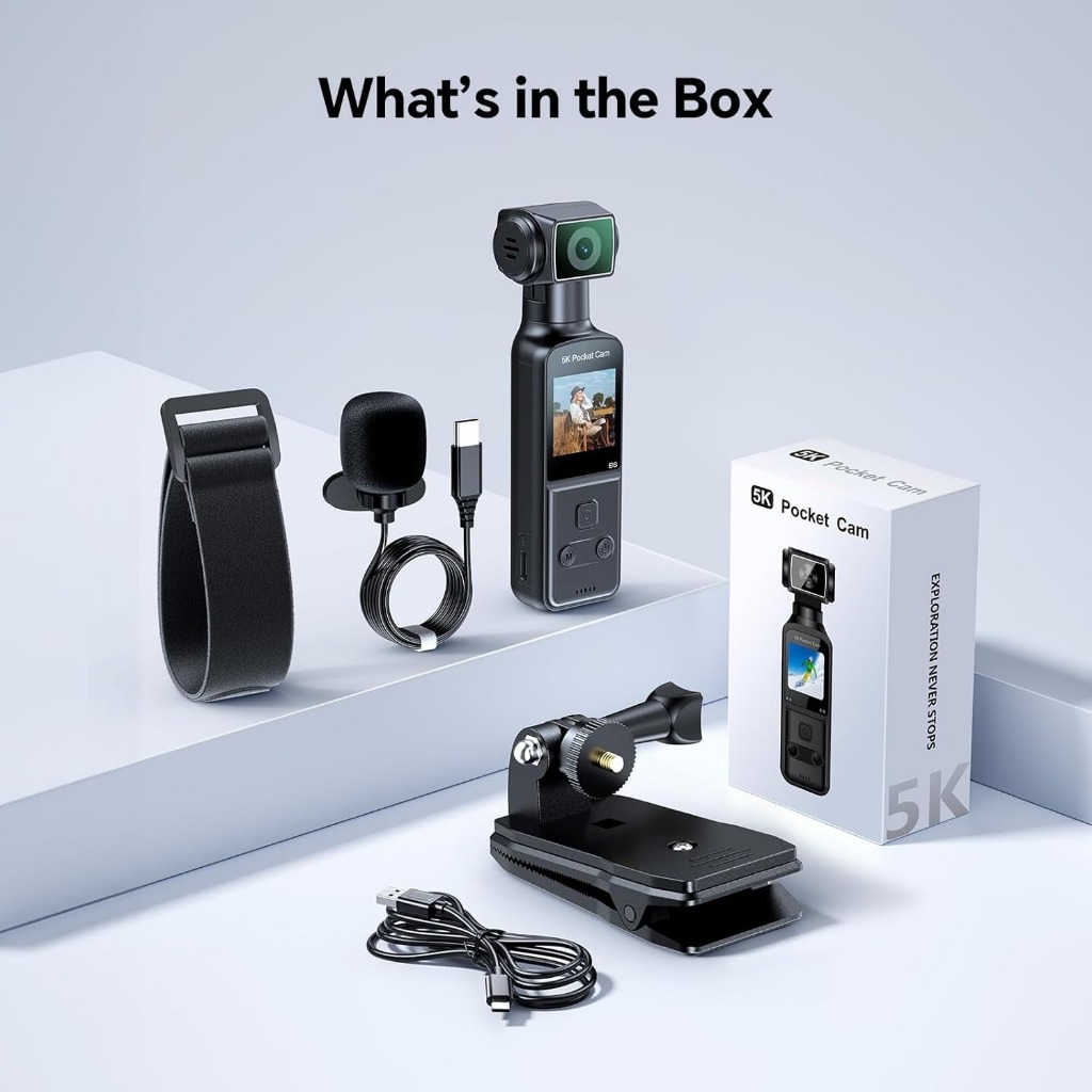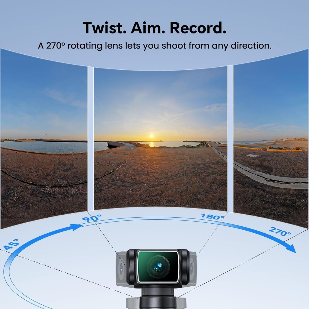 BOBLOV 5K Body Camera with Microphone, W5 Vlogging Camera, 5K/15FPS and 4K/60FPS with 270° Rotating Lens, External Mic Support, Clip/Strap Options, EIS Stabilization for Meeting, a