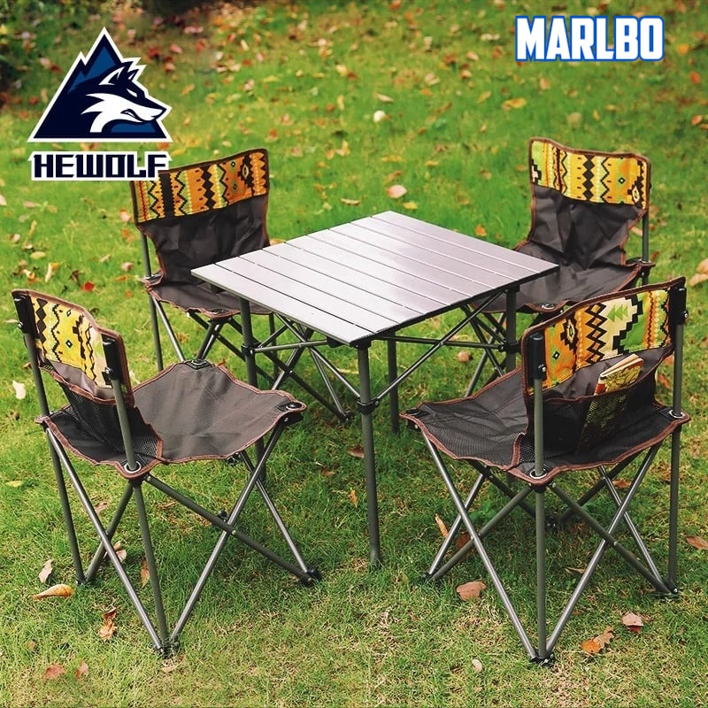 B1T4 Heavy Duty Folding Camping Chair and Table Set Oxford Fabric Aluminum Table Non-Slip