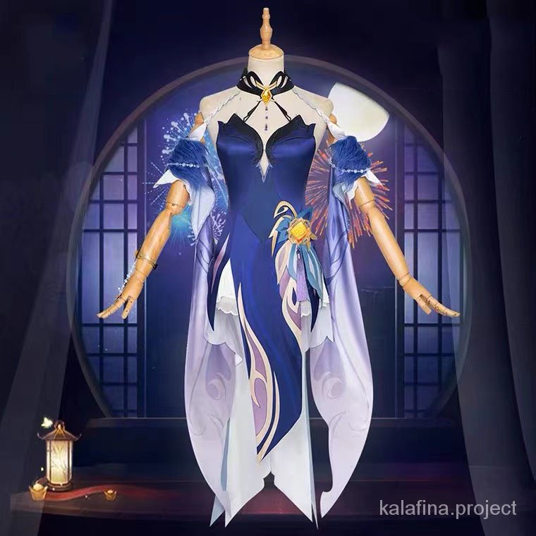 Genshin Impact Ningguang Cosplay Costume orchid in yarn Set and Wig