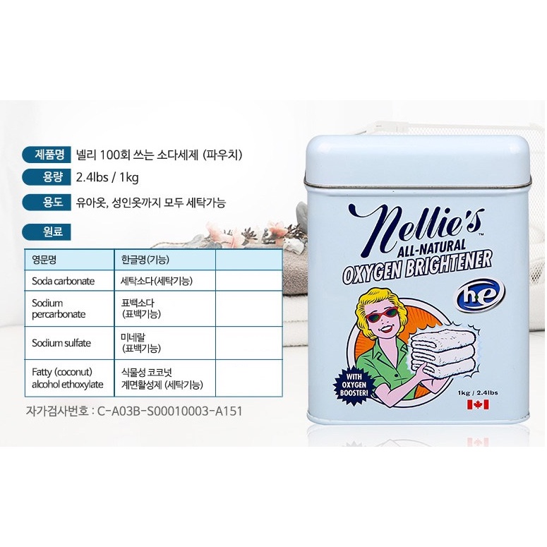 Nellie's All Natural Non- Toxic Vegan Laundry Soda Oxygen Bleach Blue 1kg