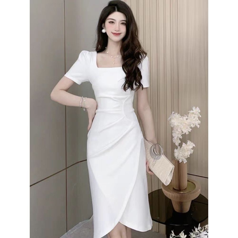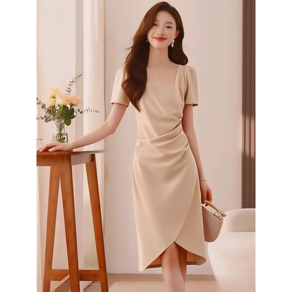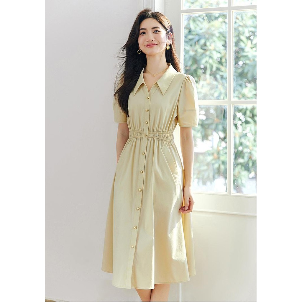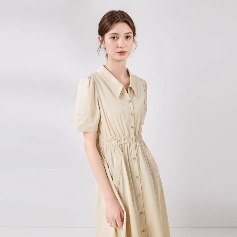 Summer beige elegant dress for women formal for wedding simple casual sunday polo dress for church
