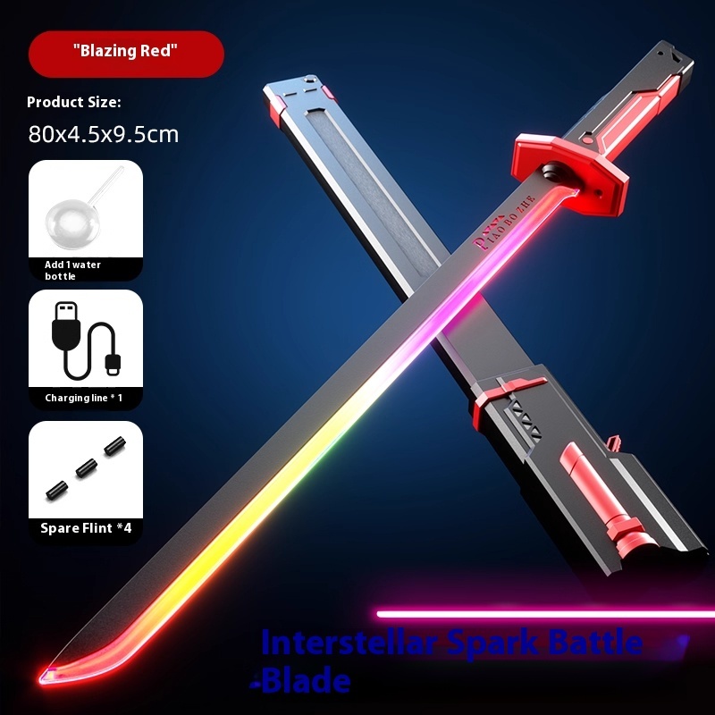 80cm rechargeable toy sword with spray and colorful light mode Christmas gift for kids role-playing