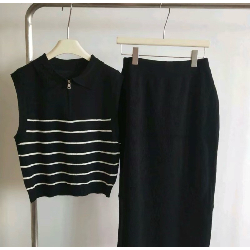 Only.Fashion Chic Stripe Terno Knitted Skirt #9503