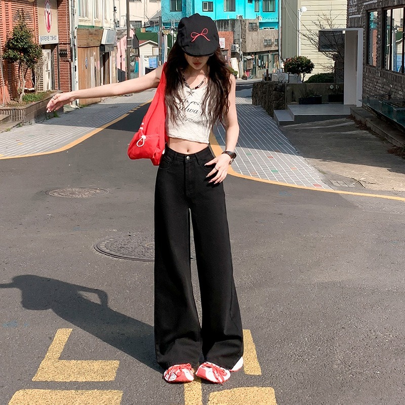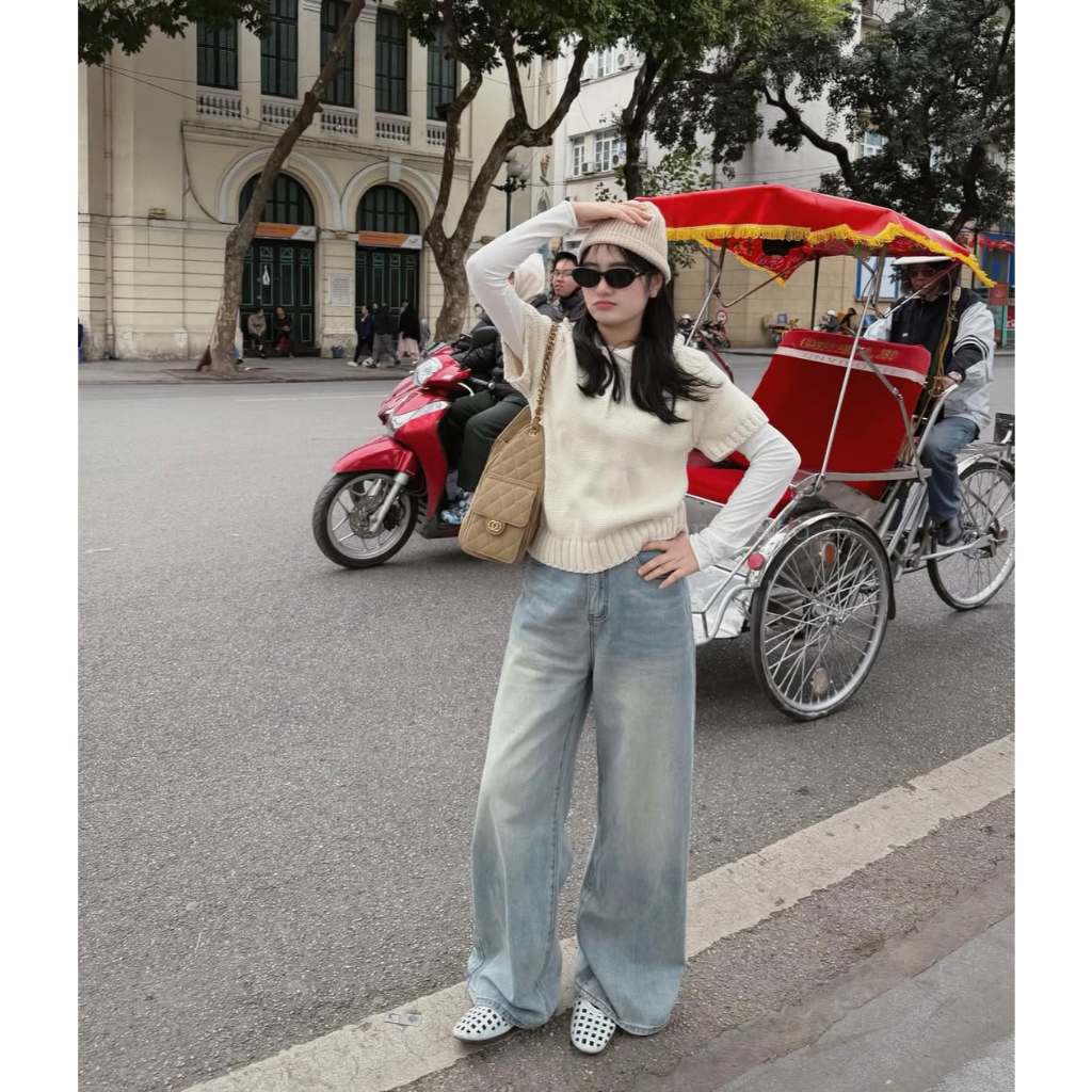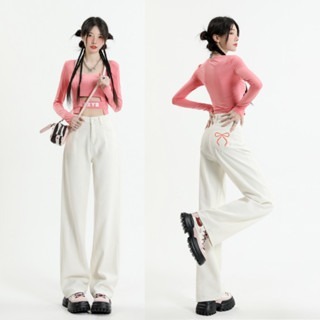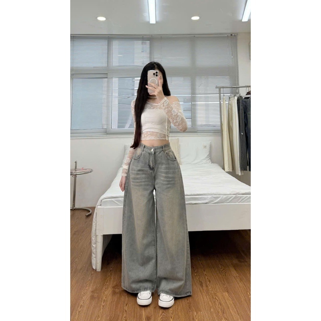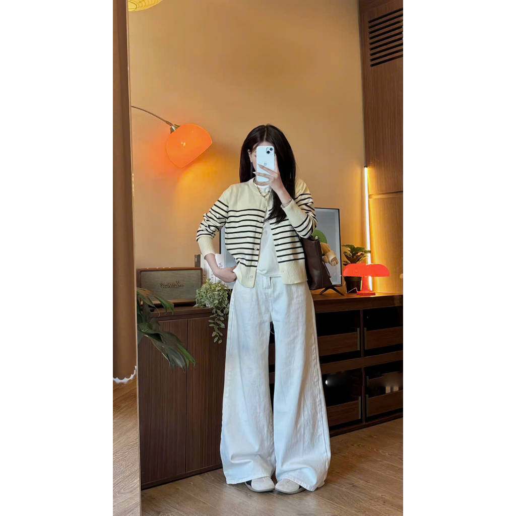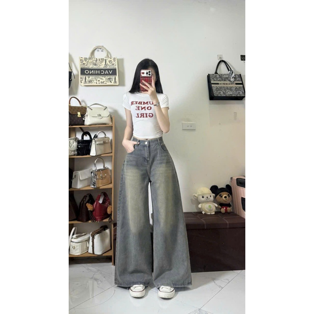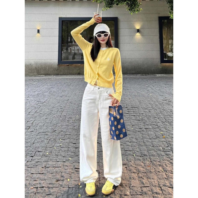 MIAA Women's Jeans White Wide Leg 28-33cm HIGH RISE made of thick denim, flattering Basic BIGSIZE figure