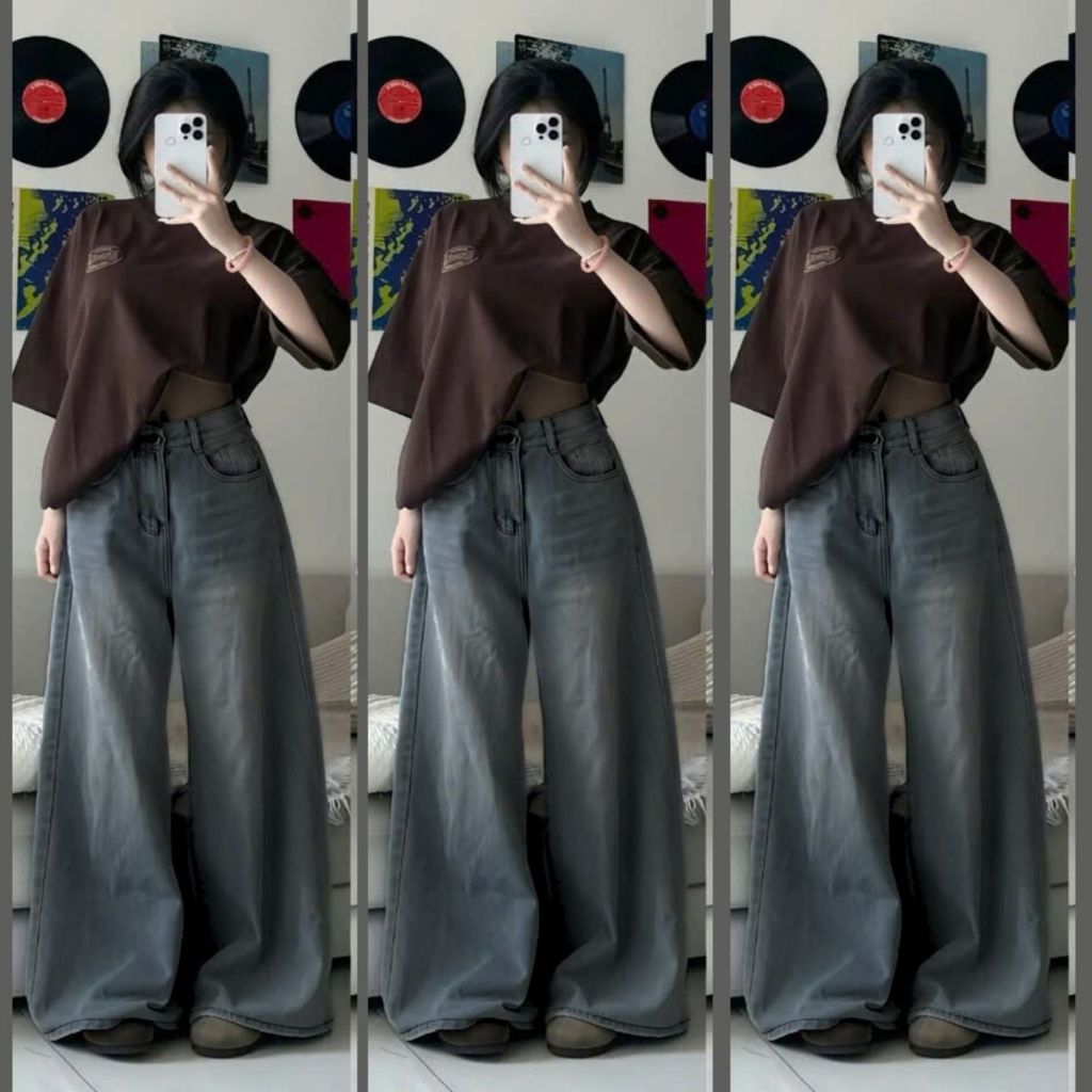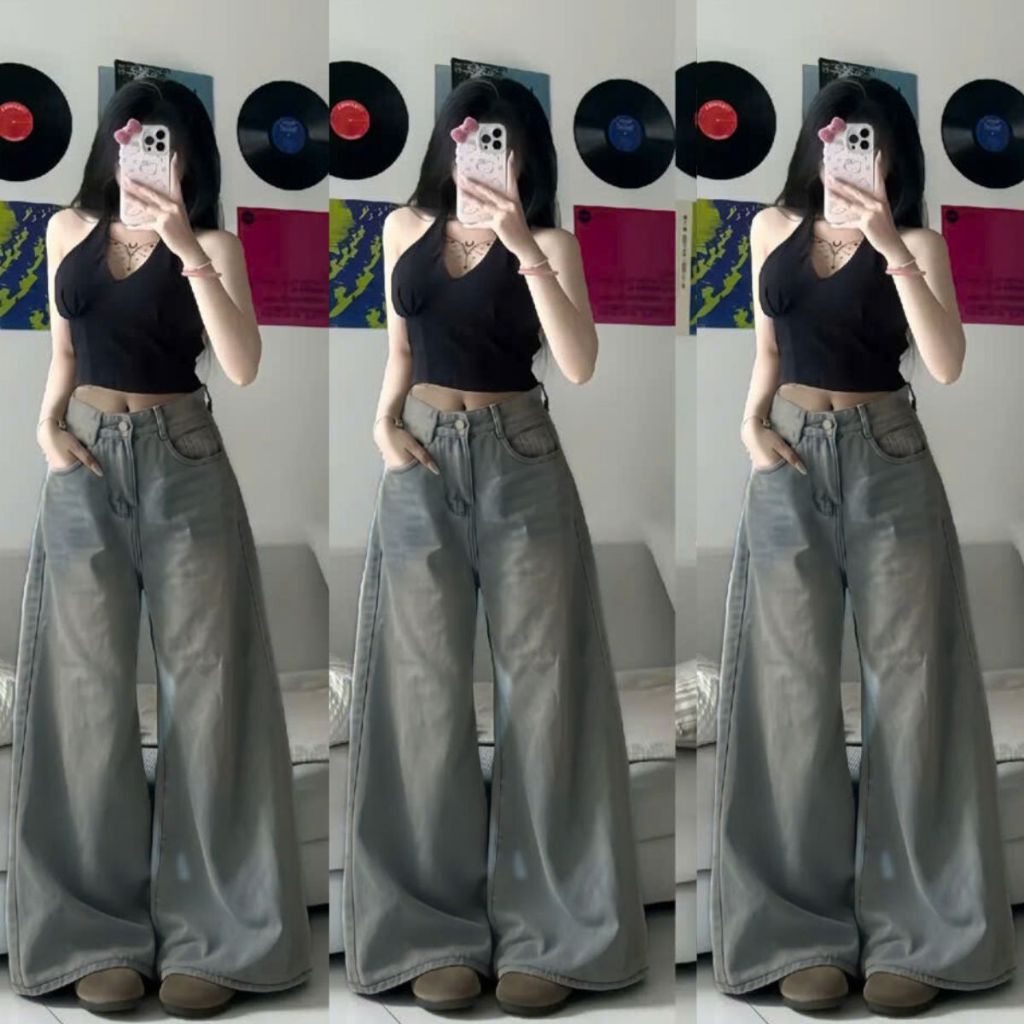 MIAA Women's Jeans 34cm Wide Leg High Waist White Loose Fit High Waist Full Size