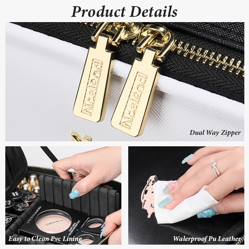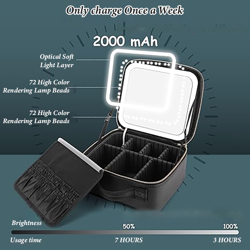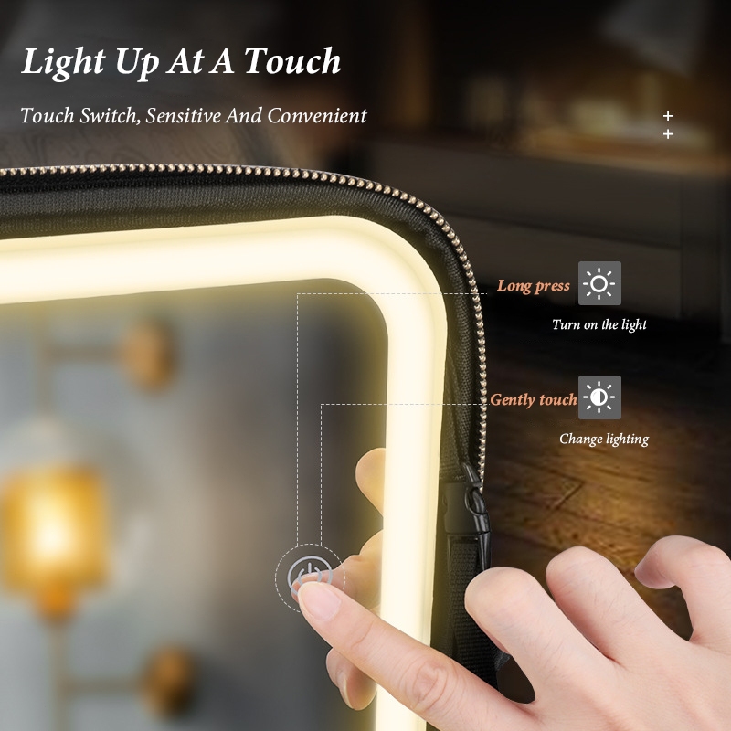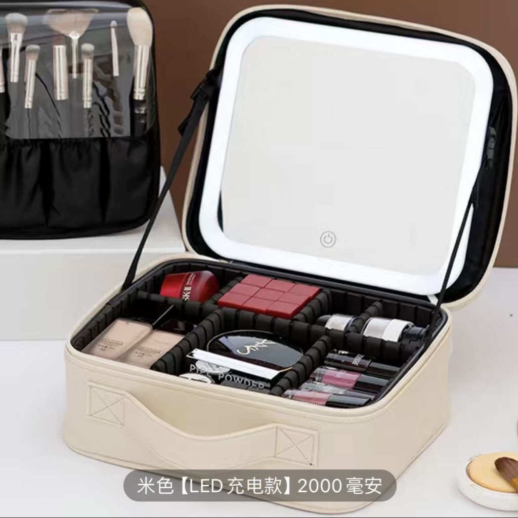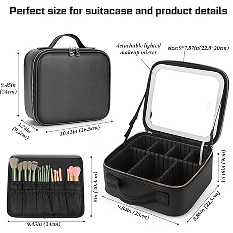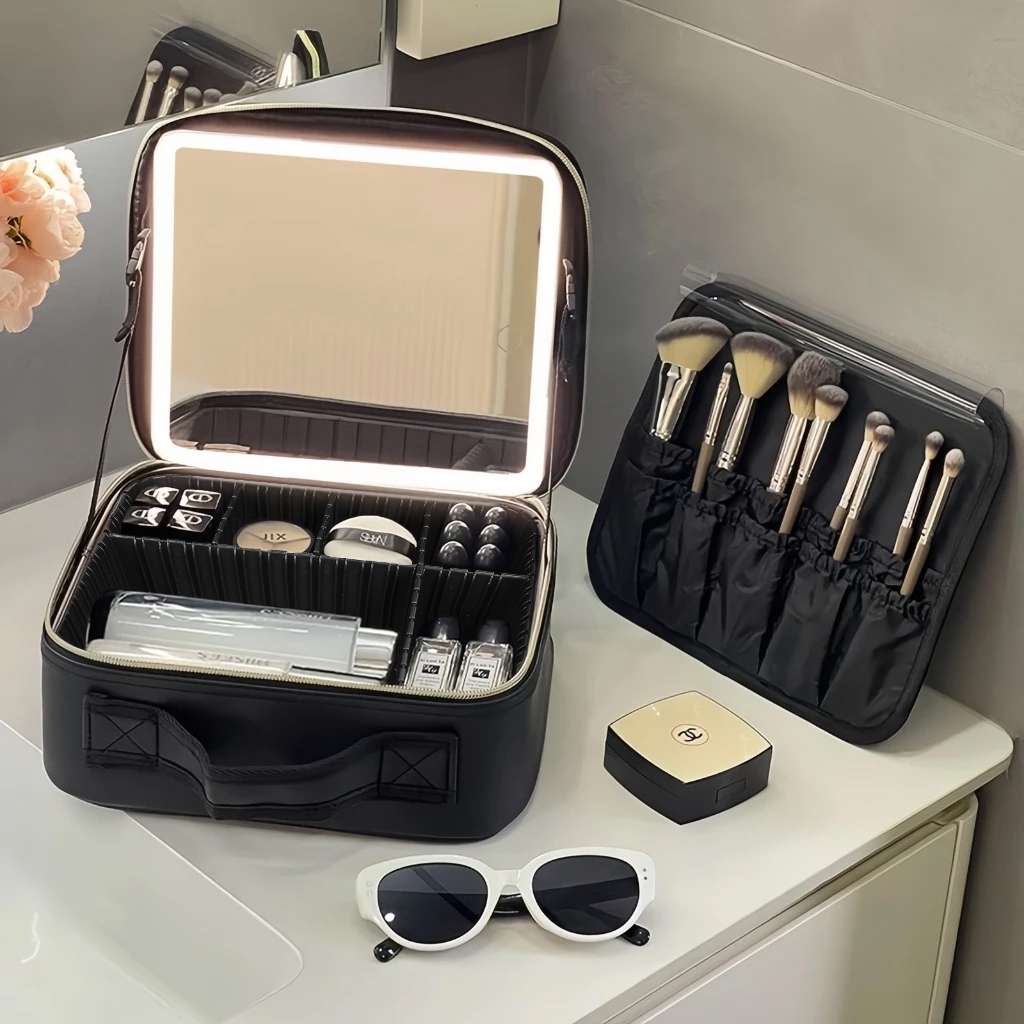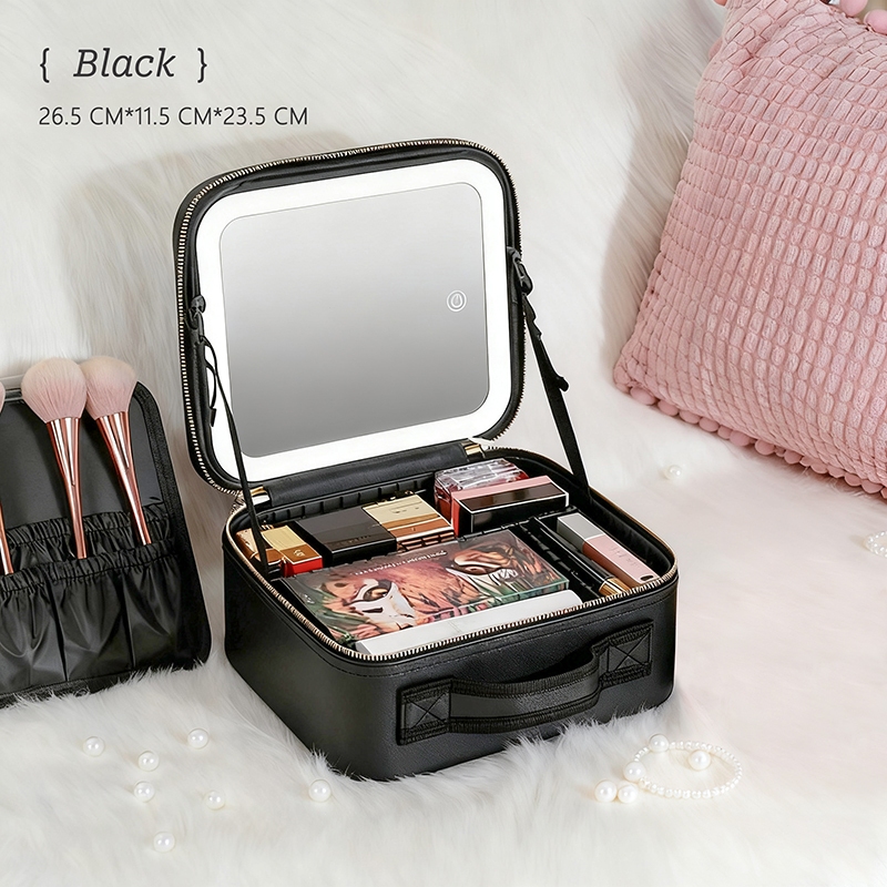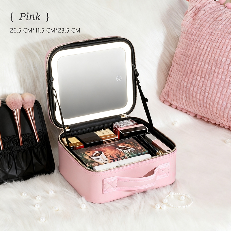 Make up Bag with Mirror LED Light Portable Waterproof Cosmetic Organizer for Travel