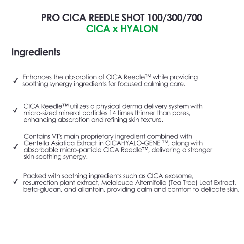 VT Cosmetics PRO CICA REEDLE SHOT 100/300/700 Skin Booster / Skin Improvement