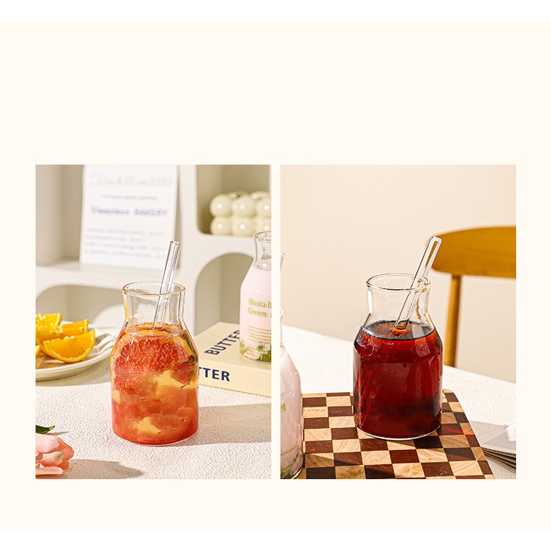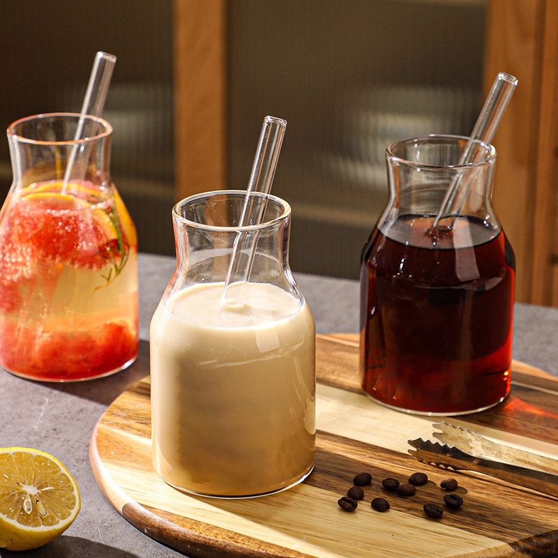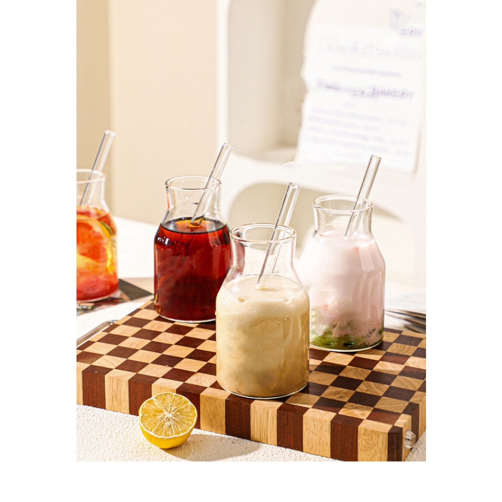 DAU Milktea Iced Coffee Drink Borosilicate Glass 2pcs Mug 650ML Set with Straw Cleaning Brush