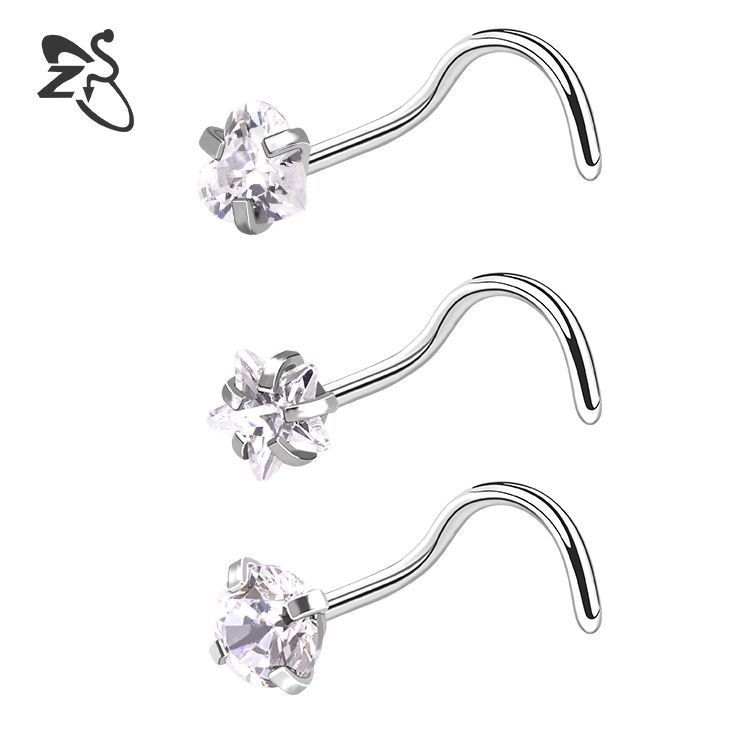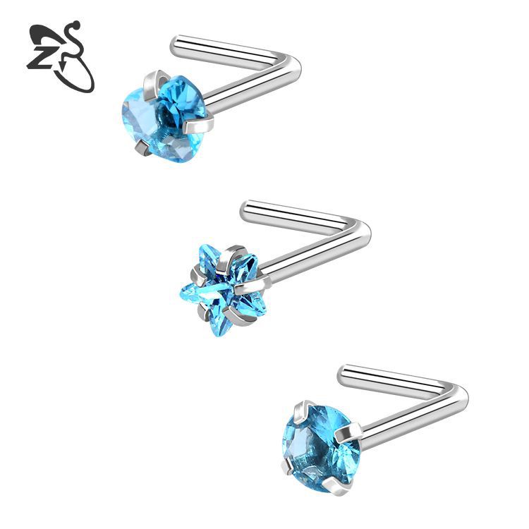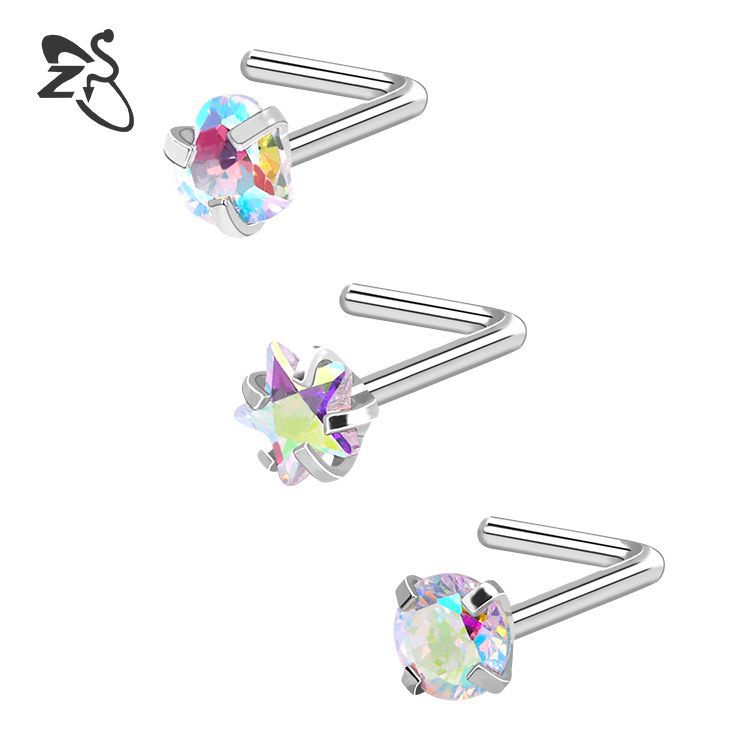 Fashion Stainless Steel Nose Piercing Silver Diamond Nose Stud L Shape Crystal Nose Pin Set Body Jewelry Accessories for Women