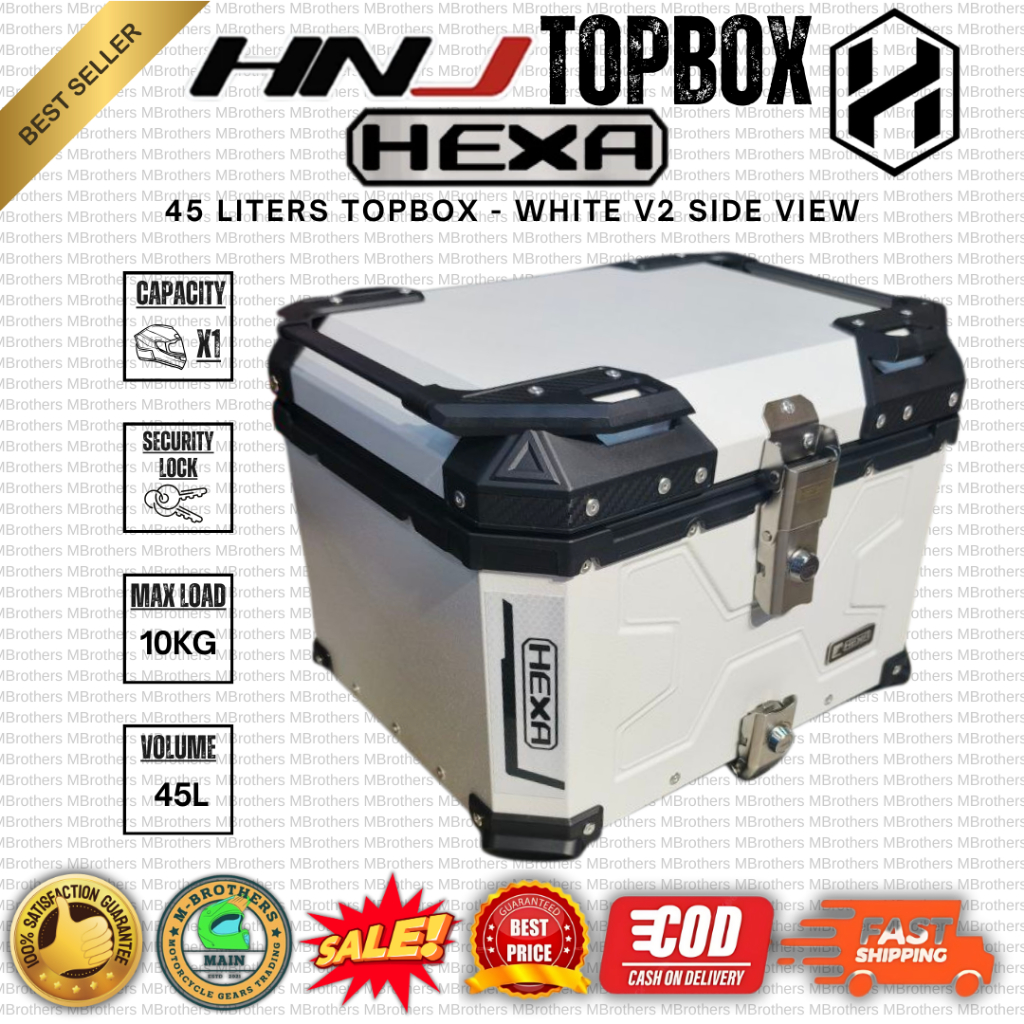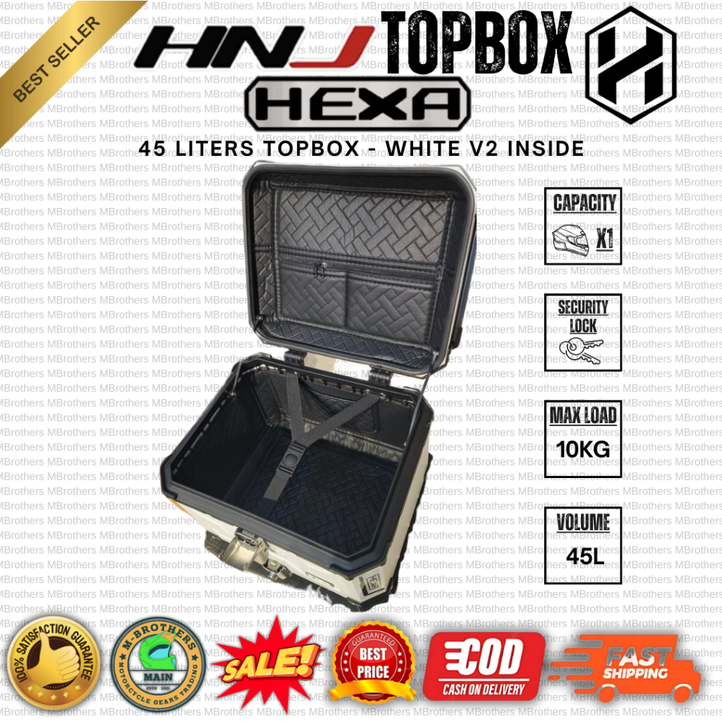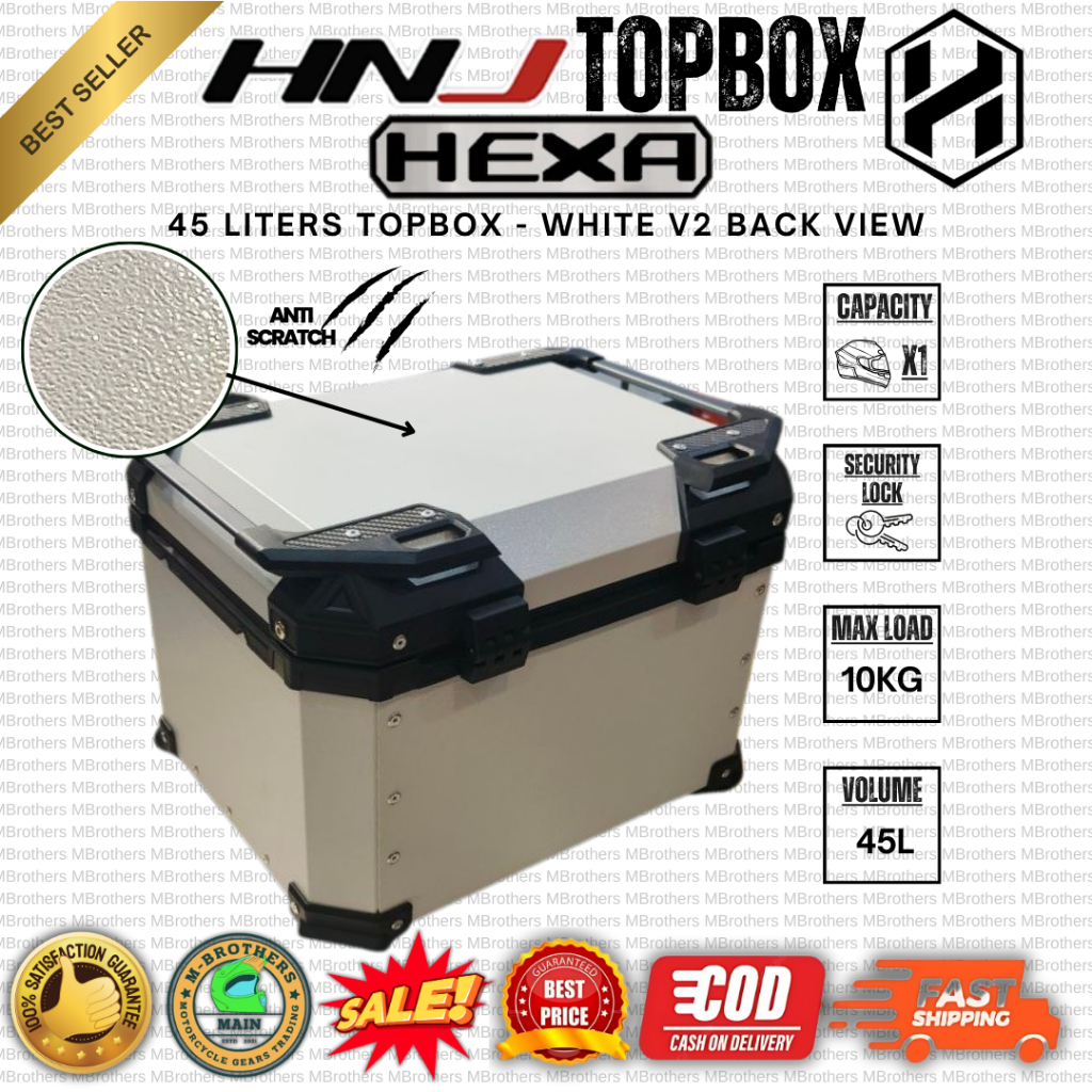 Topbox Only HNJ Hexa V2 Anti Scratch - 45L Alloy Motorcycle Top Box Free Baseplate and Backrest