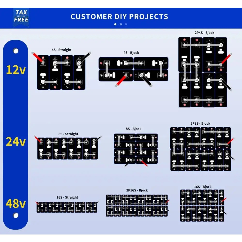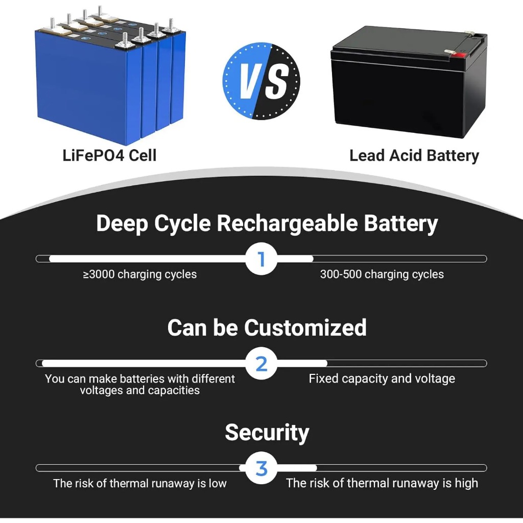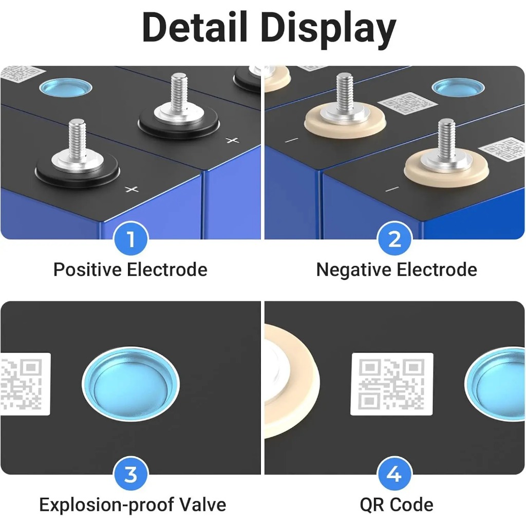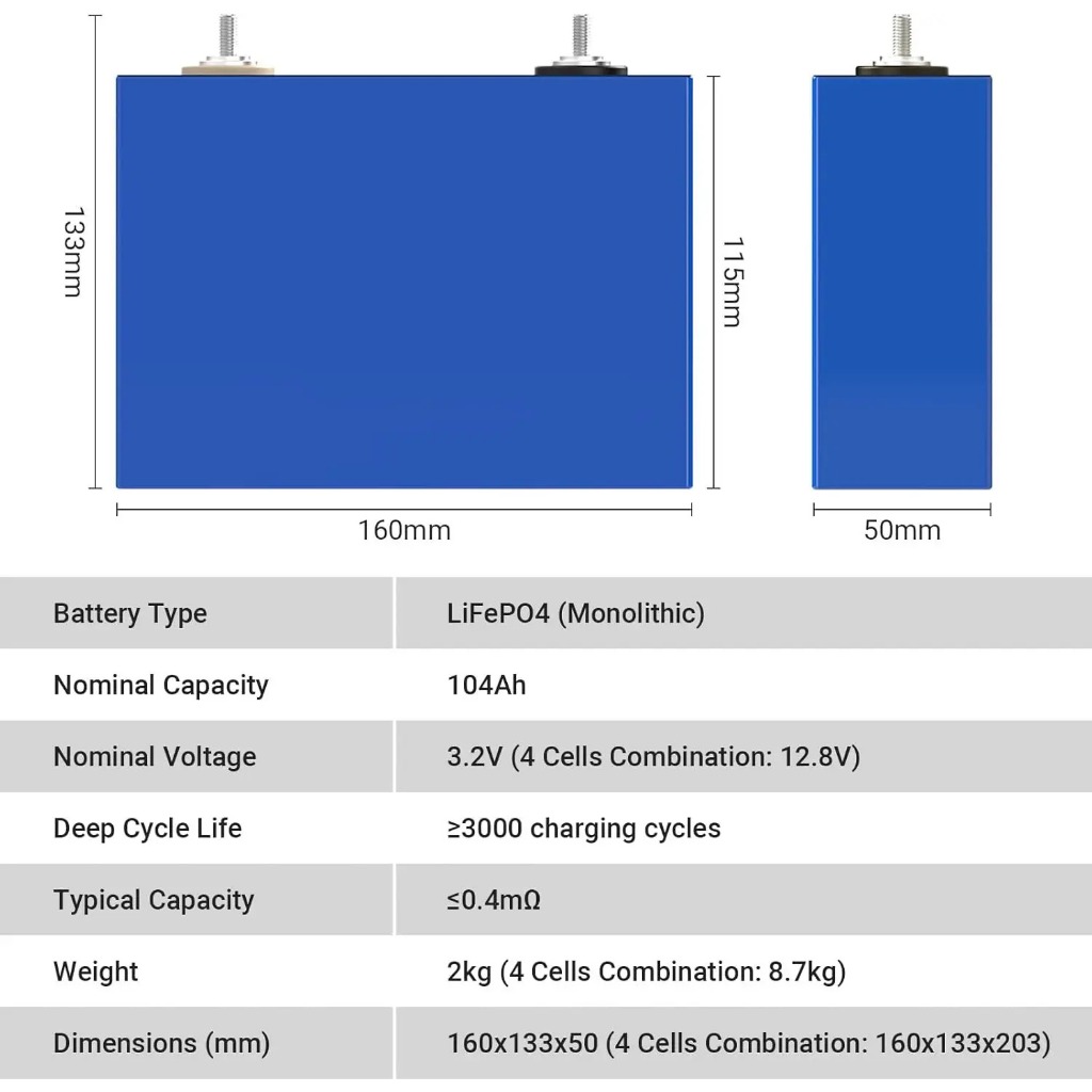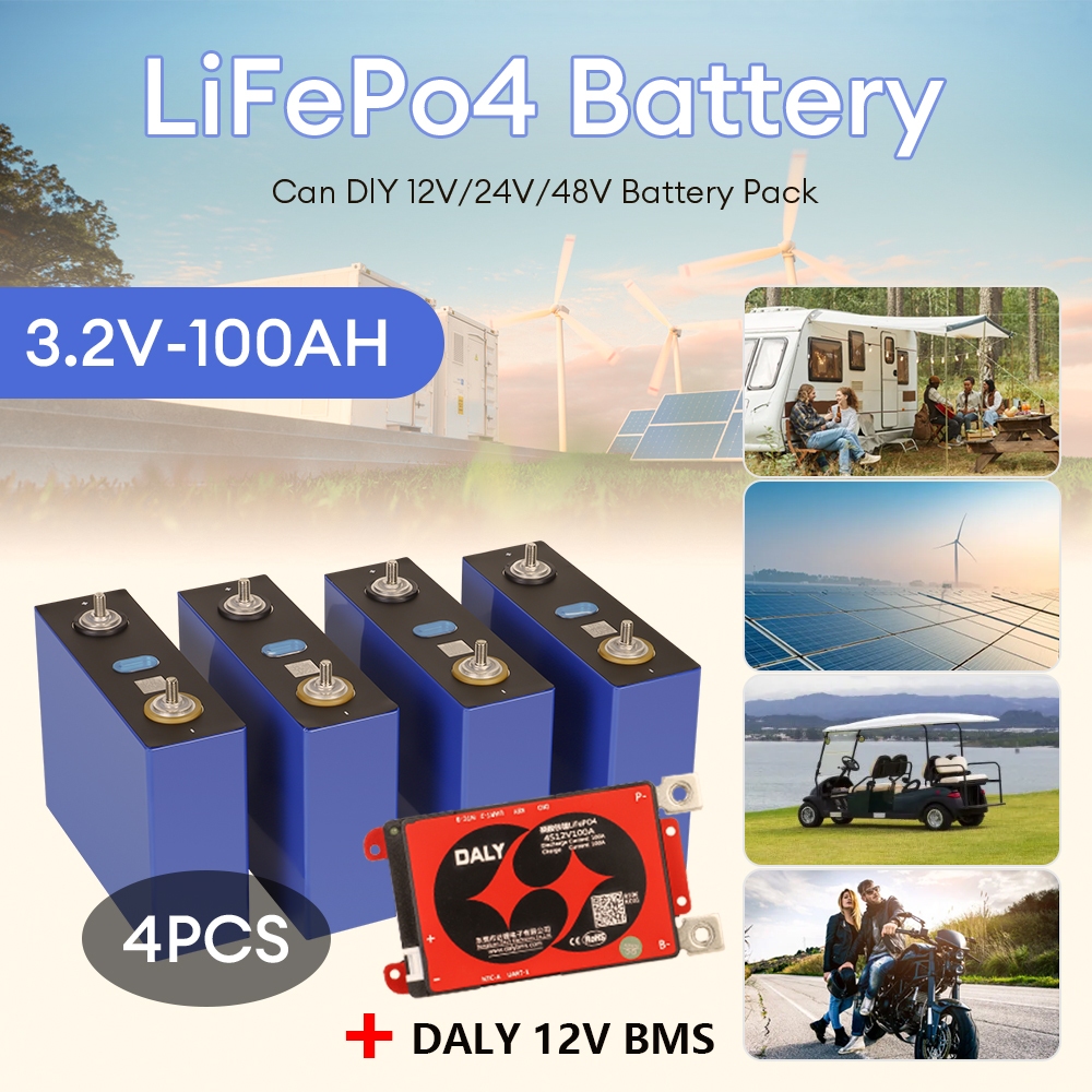 PowMr Brand New 4pcs 3.2V 100AH Lifepo4 Battery Prismatic Cells 4000 Lifecycles Solar Included Daly 4s 12V 100A Bms