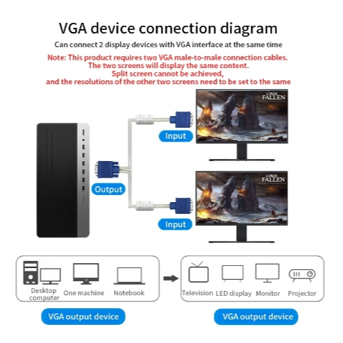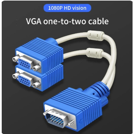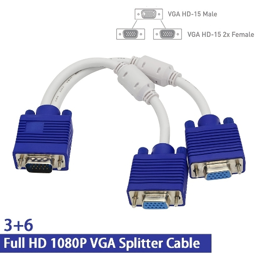 Vga Splitter Cable Dual Vga Monitor Y Cable 1 Male 2 Female