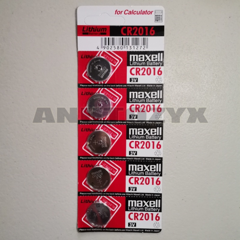 Maxell CR 2016 Lithium Button Cell Battery 3V 5 Piece Pack