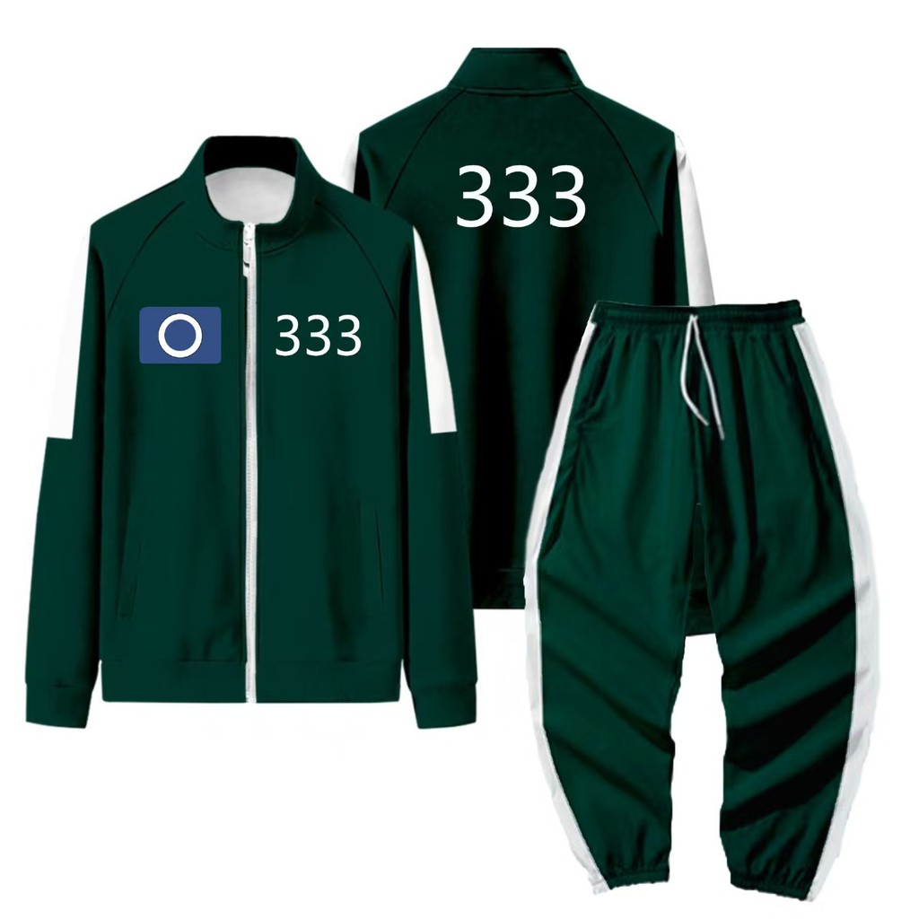 【Uhome】Season 2 Squid Game Coat and Pants Sets Unisex Halloween Party Outfit Disguise Cosplay Costume Jackets Tracksuits Dark Green