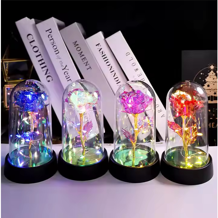 LED Galaxy Rose Lamp Glass Cover Birthday Gift for Girlfriend Mother's Day Valentine's Day