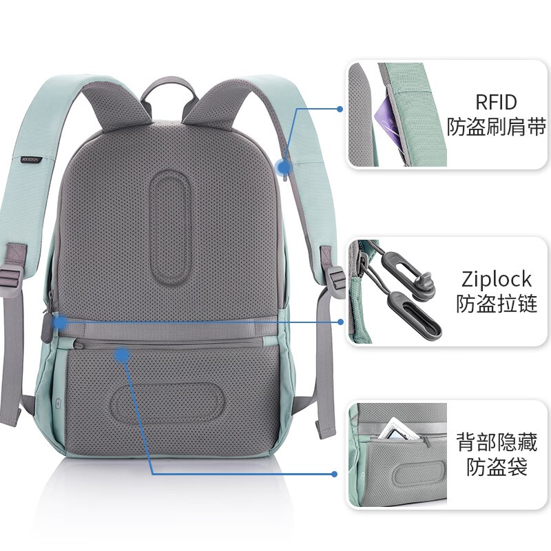 XDDESIGN Urban Safety Lightweight Bag, 15.6-Inch Laptop Soft Computer Bag, Comfortable and Breathable Back, Double Zipper Expansion (Black/Green)
