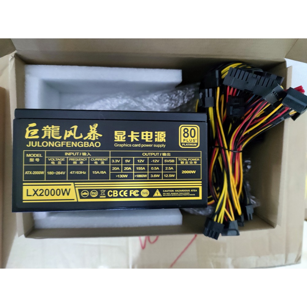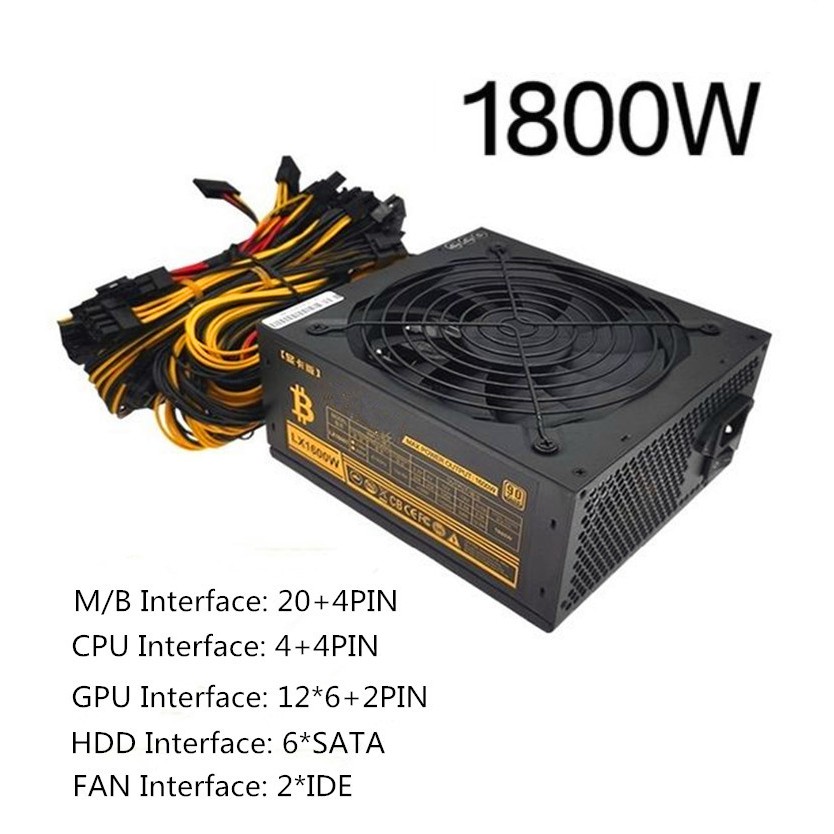1800W/2000W/1600W Power Supply 220V for 8GPU Miner Rig PSU 1800W ATX Power Supply