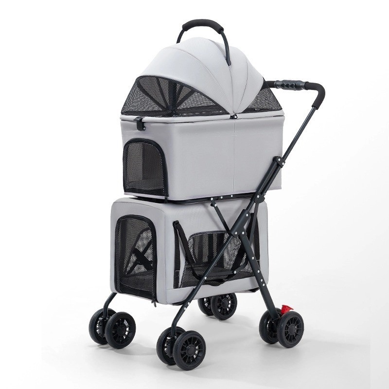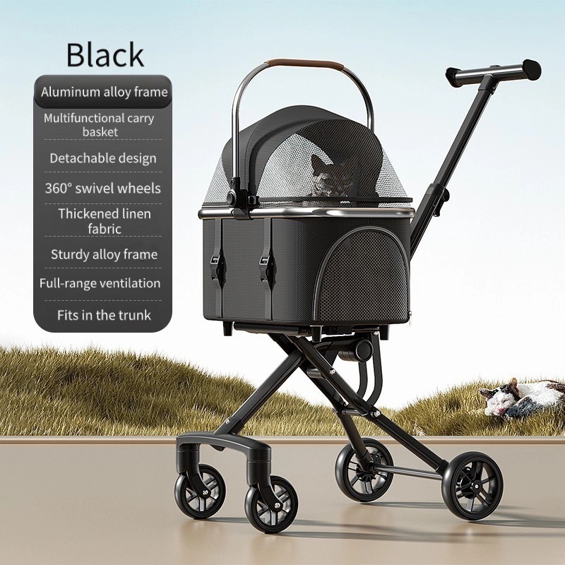 【Ship in 24h】New Pet Stroller 3-in-1 Foldable 4 Wheels Outdoor Travel Dog Trolley Removable Basket