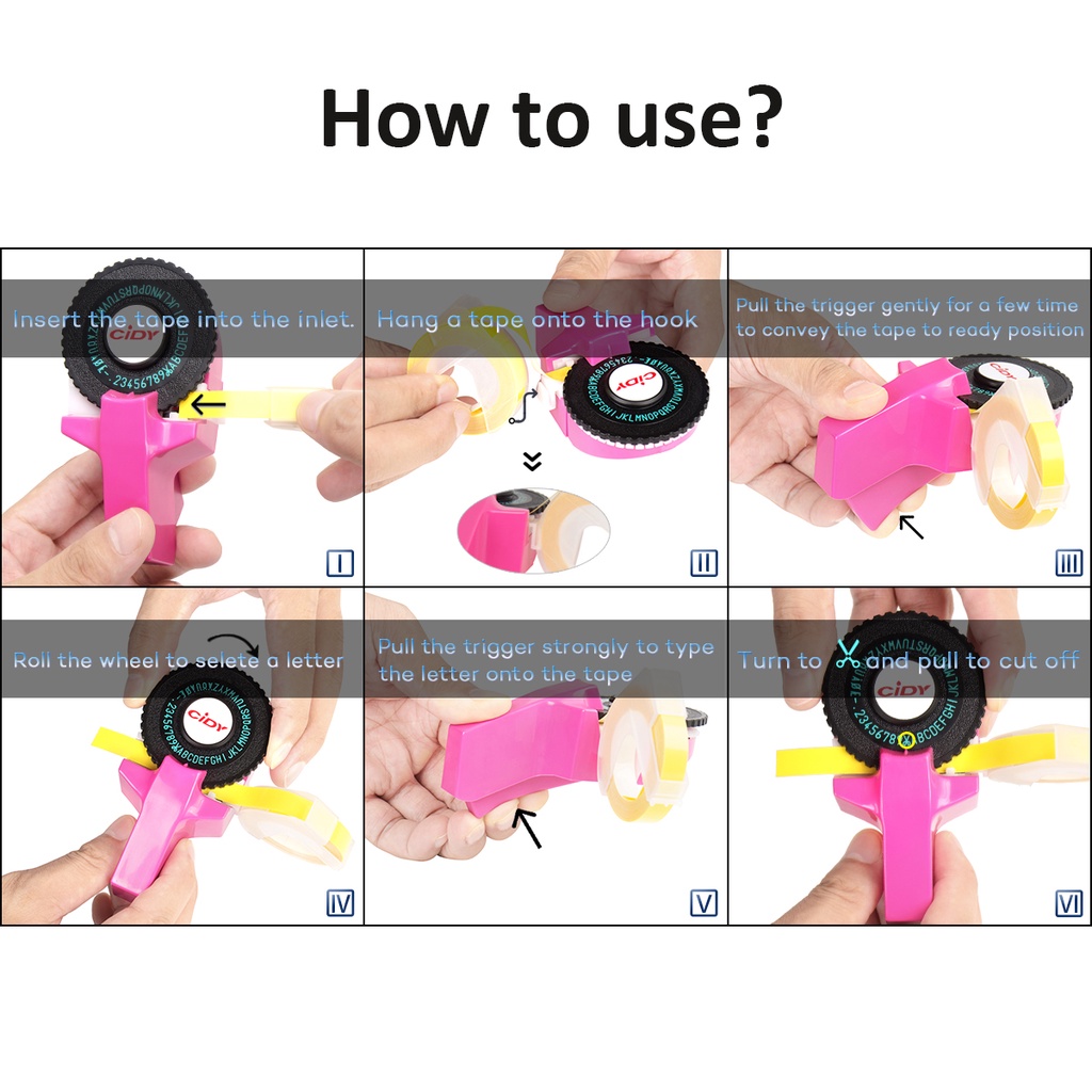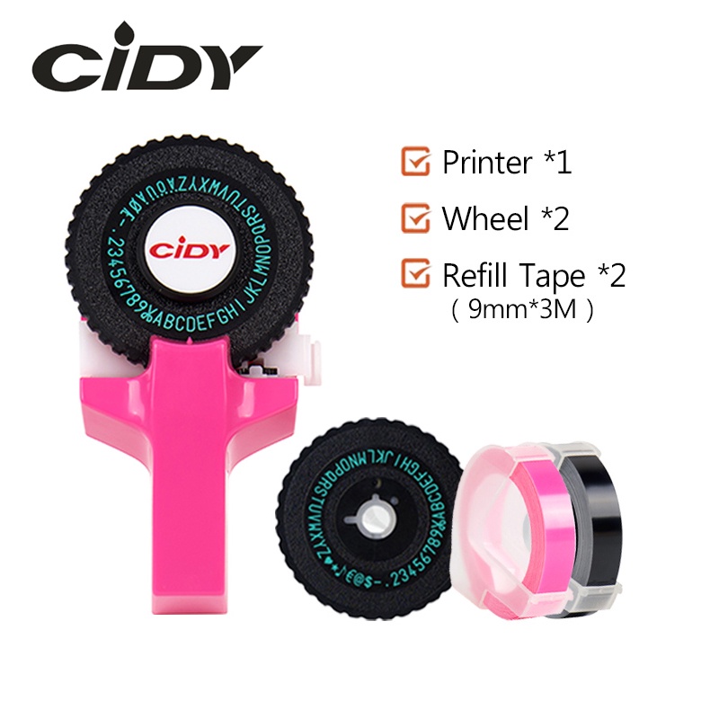 Pink CIDY Label Maker with 2 Rolls Refill tape and 2 Wheels PVC 9mm Label Tapes for Motex 3D Embossing Label Printer