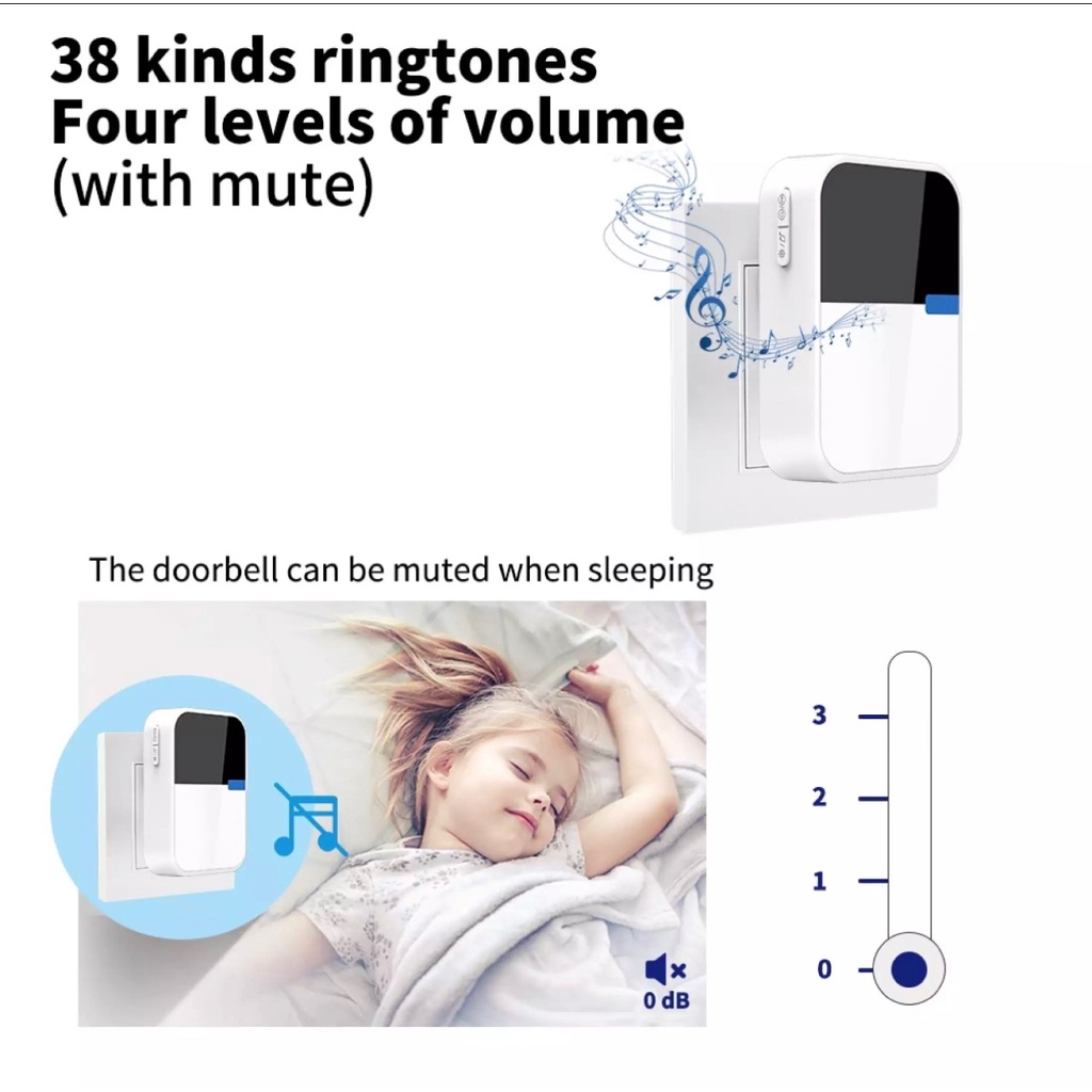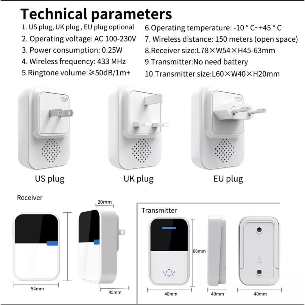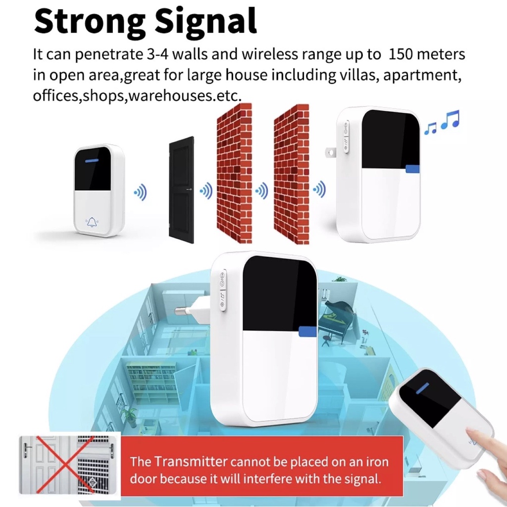 Wireless Self-Powered No Battery Required Doorbell Water Resistant with Remote Control