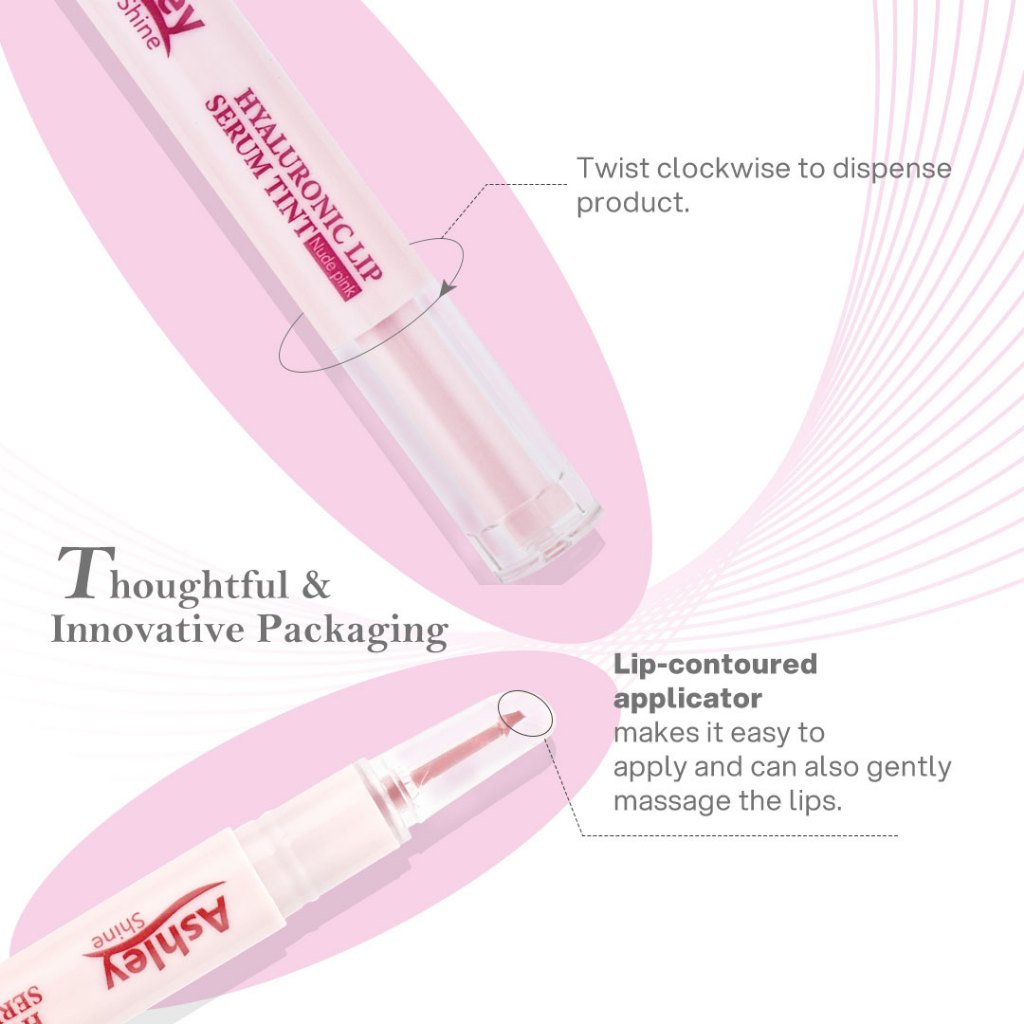 New Ashley shine Hyaluronic lip serum tint nude pink color-locking formula long lasting make up