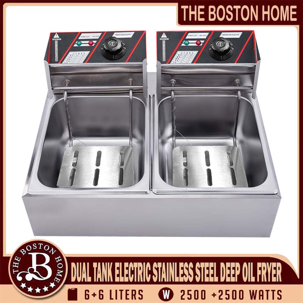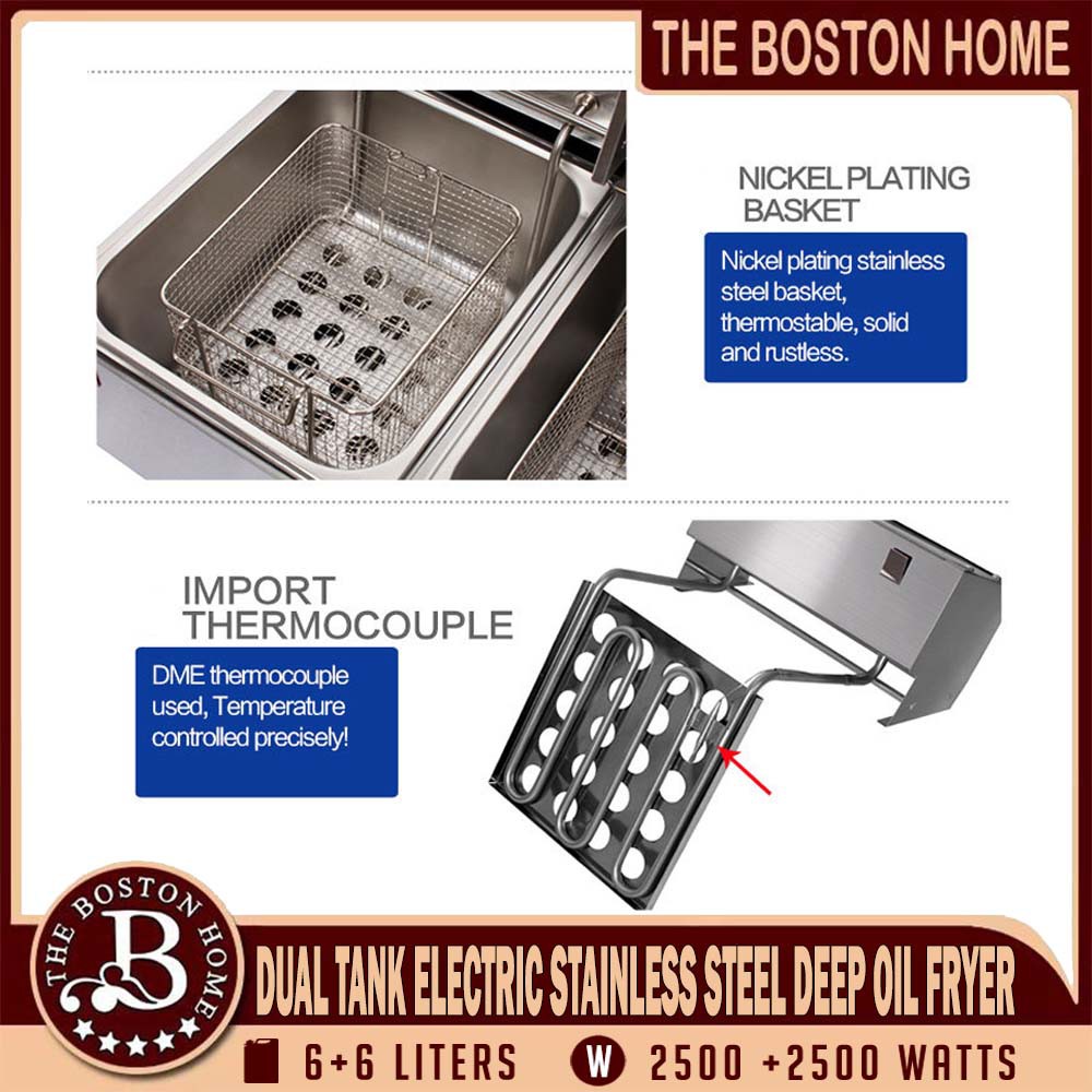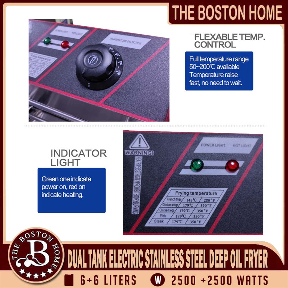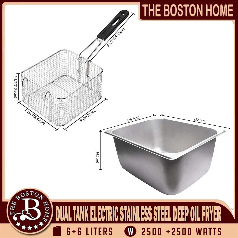 Boston Home Double Deep Fryer Electric Stainless Steel Deep Oil Fryer (6Liters+6Liters)/12Liters