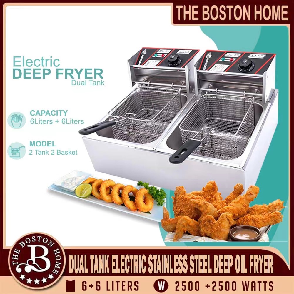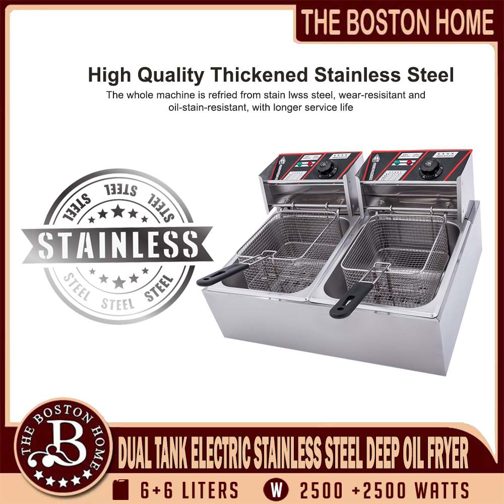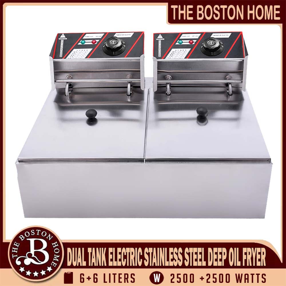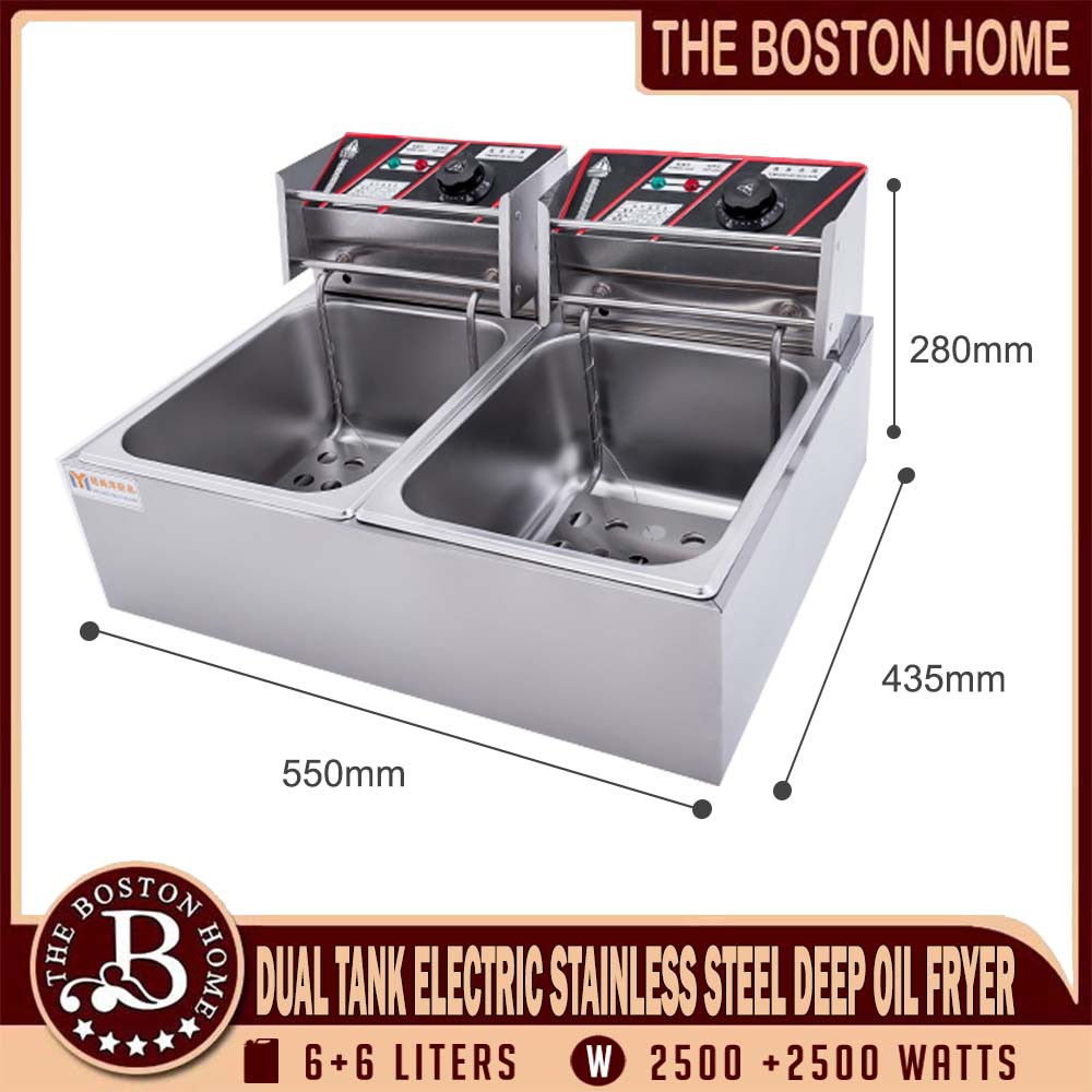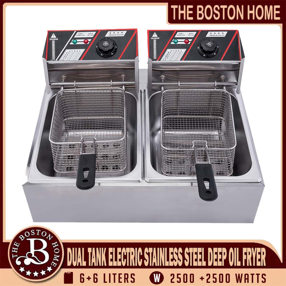 Boston Home Double Deep Fryer Electric Stainless Steel Deep Oil Fryer (6Liters+6Liters)/12Liters