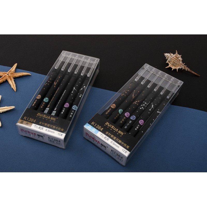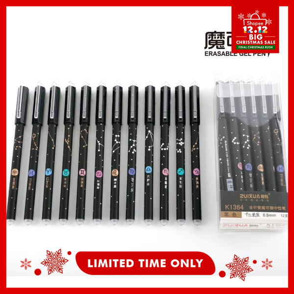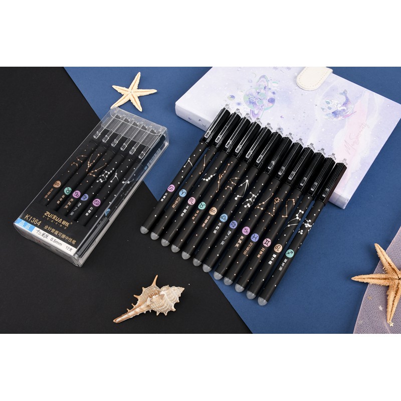 HOKKA Erasable Gel/Friction Pen 12PCS Twelve Constellations (Black Ink)