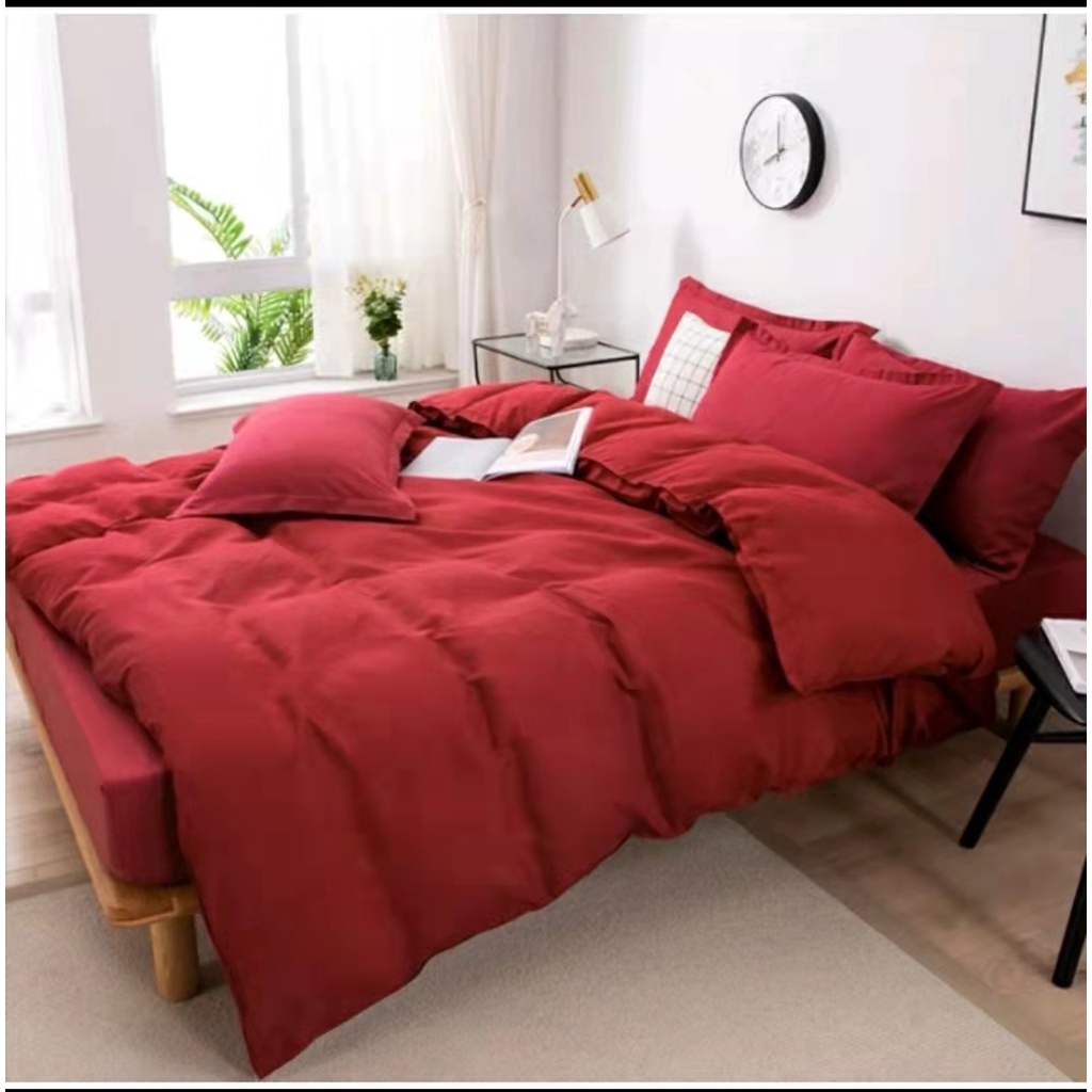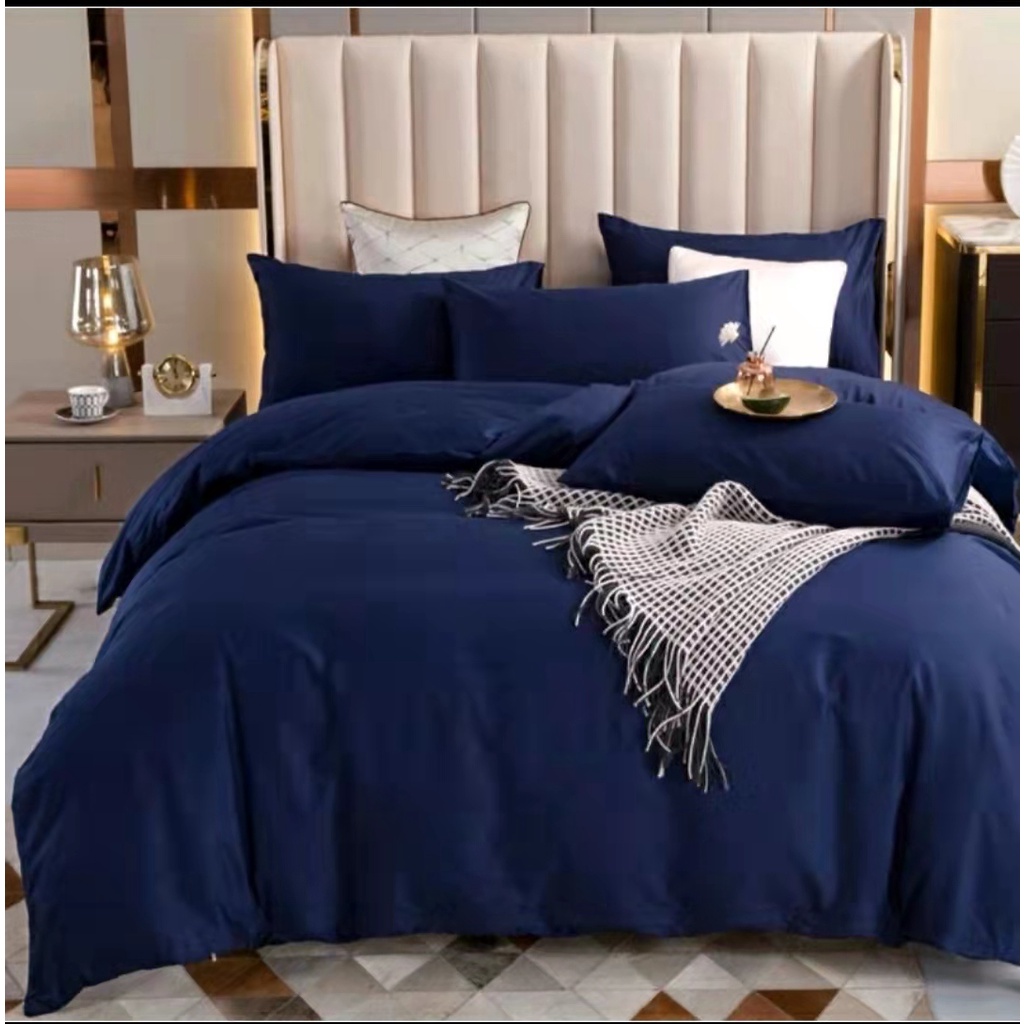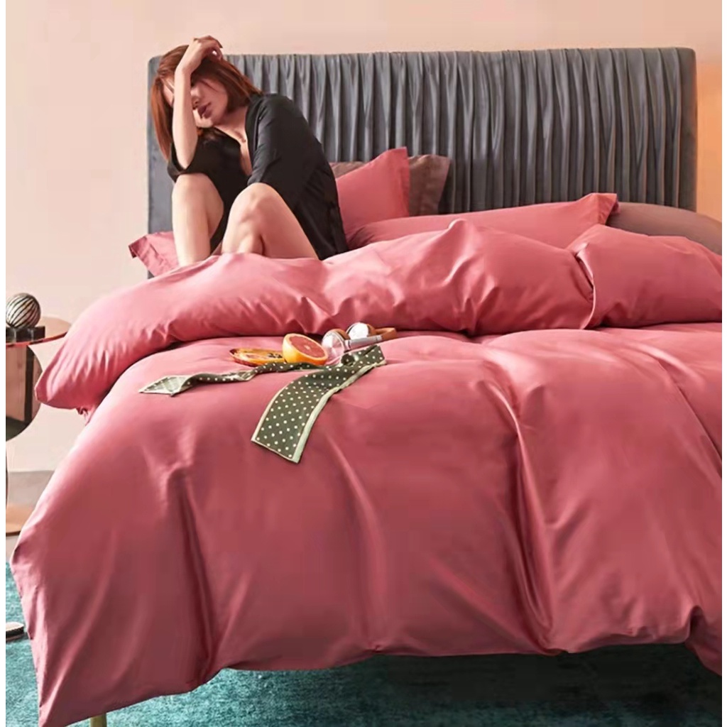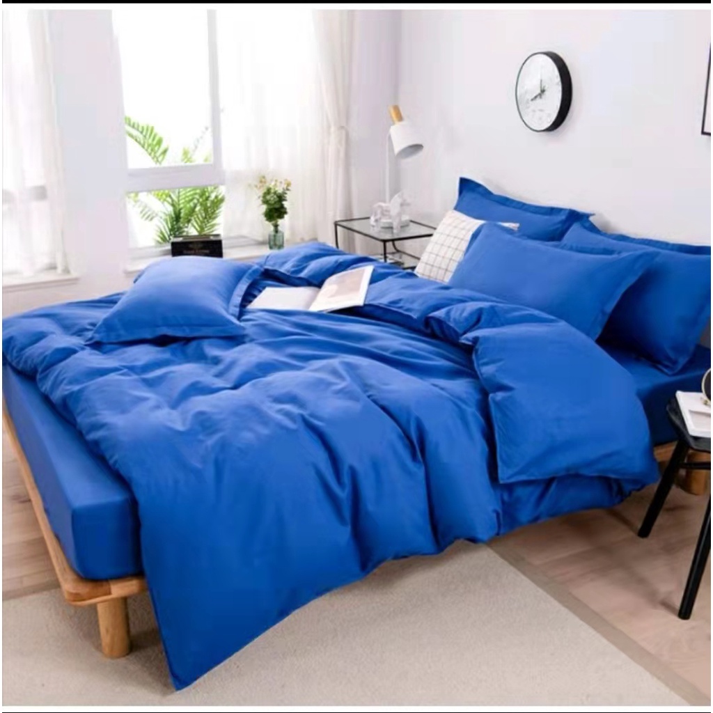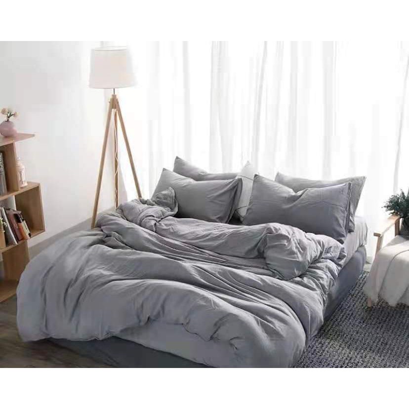 4in1 plain colors bedsheet set with duvet cover double/queen/KING size us cotton