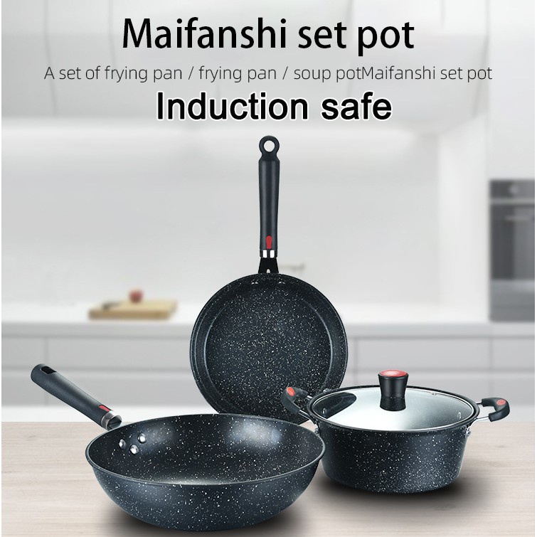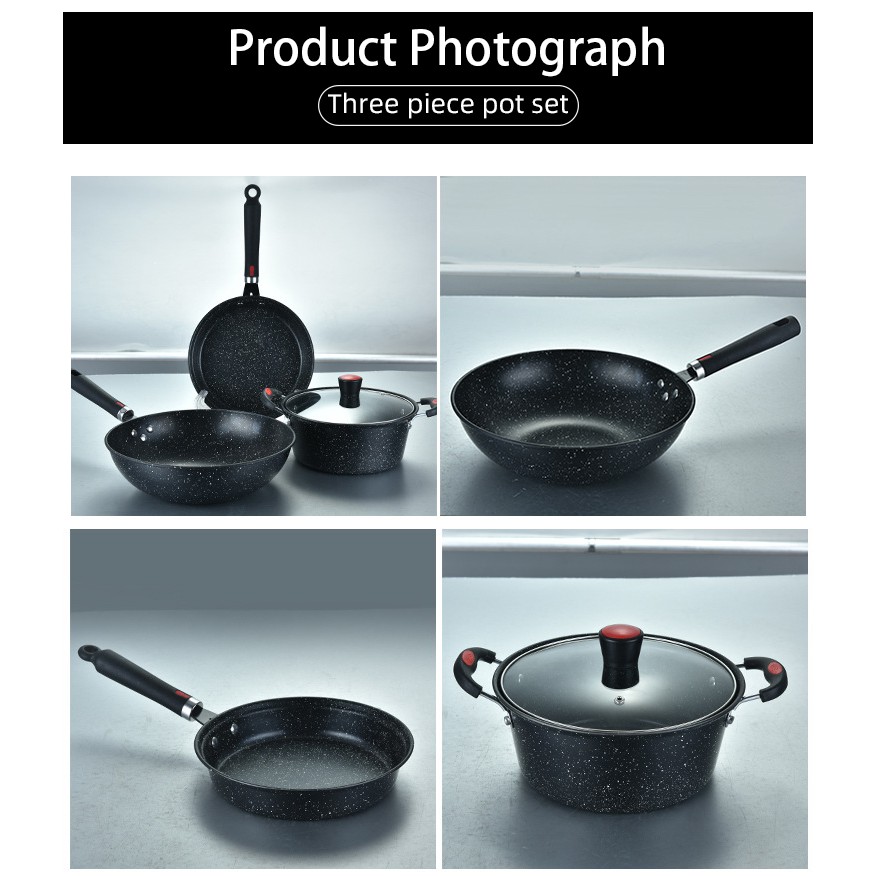 3Pcs Induction Cooker Kitchenware Cookware Set Non-Stick/Soup Pot/Fry Pan