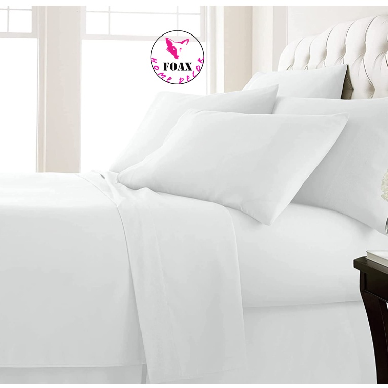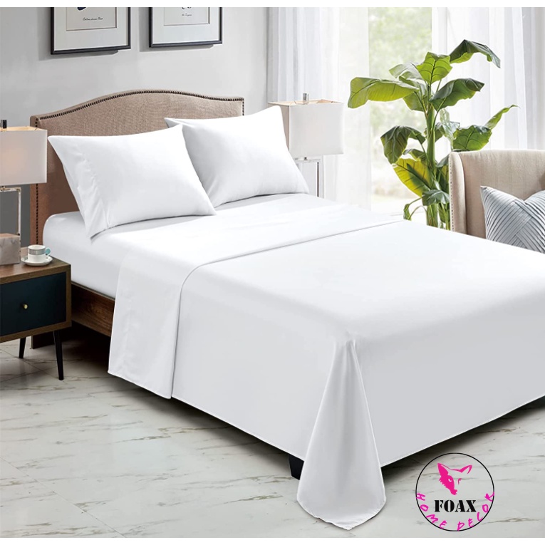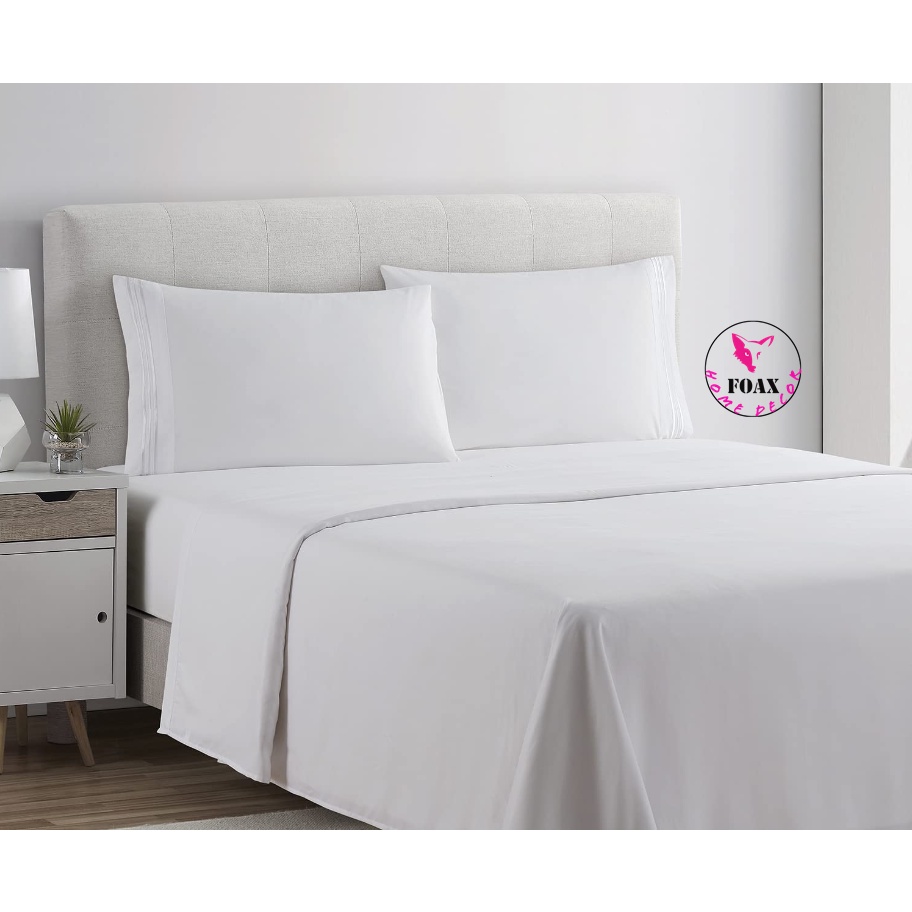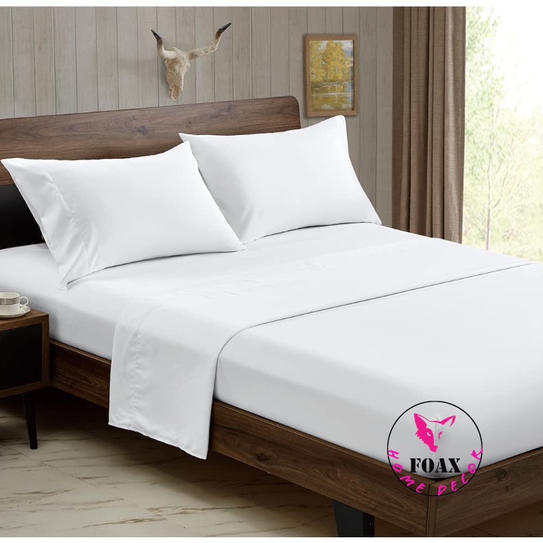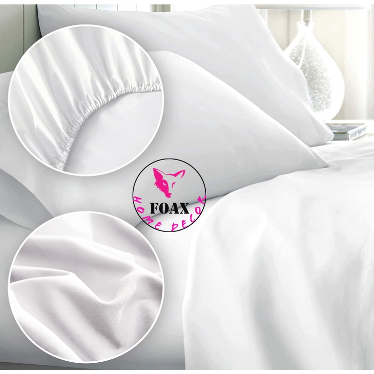 100% Cotton Hotel Bedding Set Solid White Color Fitted Bed Sheet Bedding Set C-800