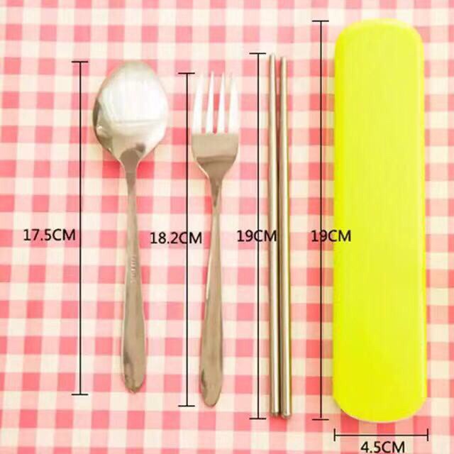 ZH121 Stainless Tablewear 3 in 1 Spoon Fork and Chopstick with Box Portable Travel Spoon Set