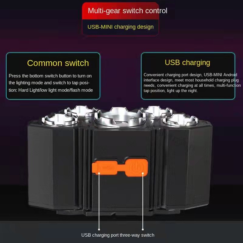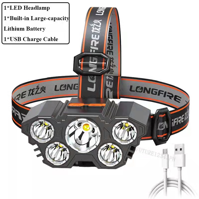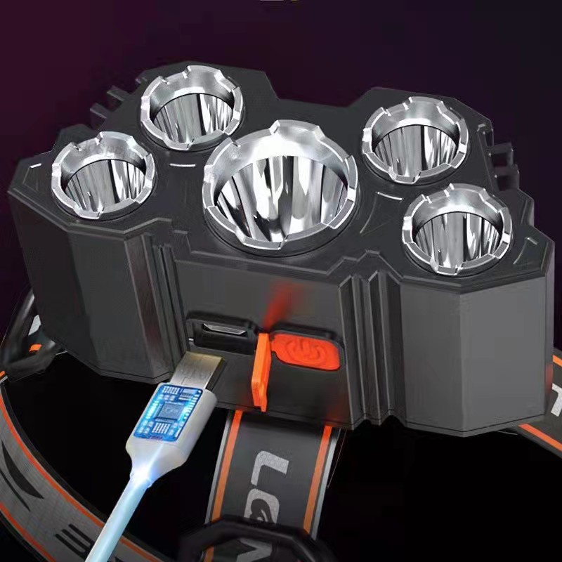 COD HeadLamp Five Heads Ultra Bright Headlamps Usb Rechargeable Fishing Headlight Outdoor Campi