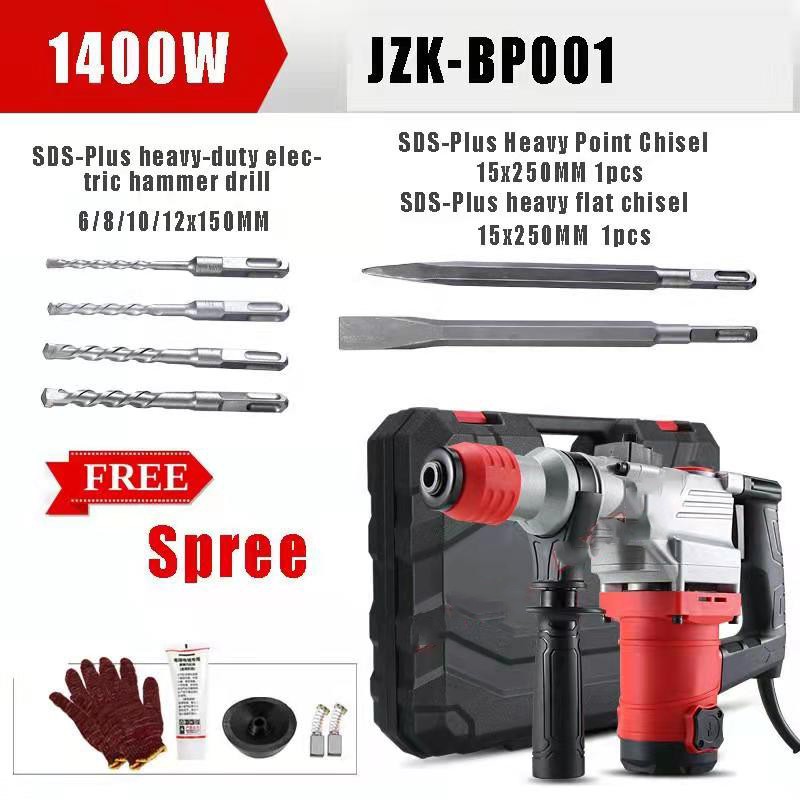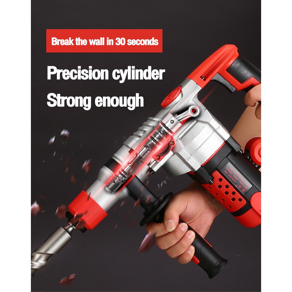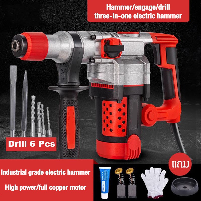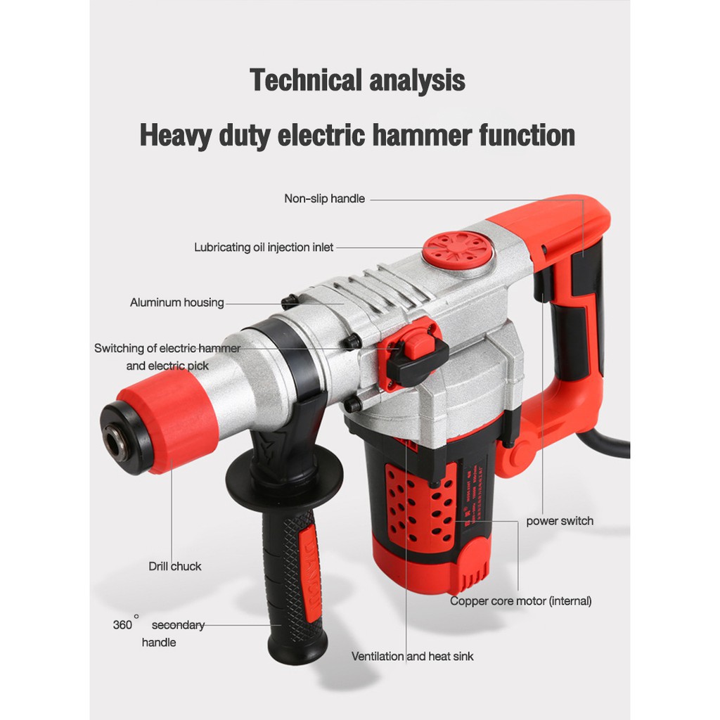 2200W heavy duty electric hammer drill with chisel and drill bit electric impact drill set tools