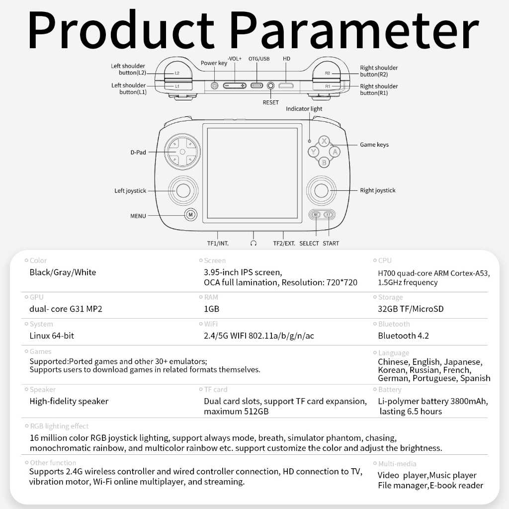 【local Shipping Restocking】ANBERNIC RG CubeXX Retro Game Console 3.95-inch Linux 64-bit Supports 2.4G wireless controller and wired controller connection