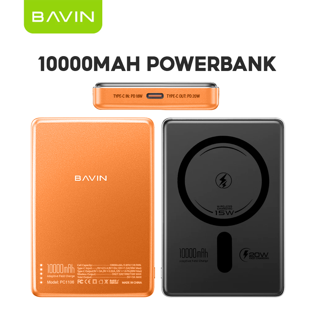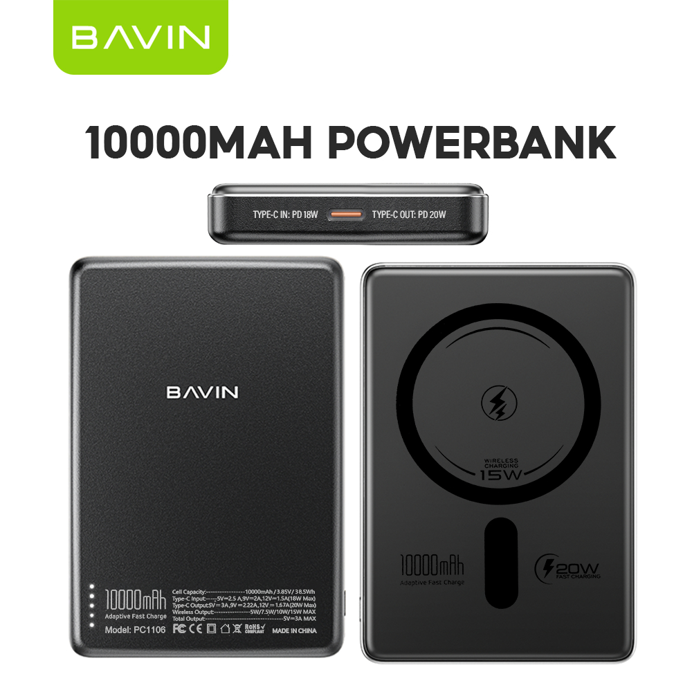 BAVIN PC1095 / PC1106 10000mAh 15W Wireless Powerbank Ultra Thin Fast Charging w/ Free Magnetic Ring