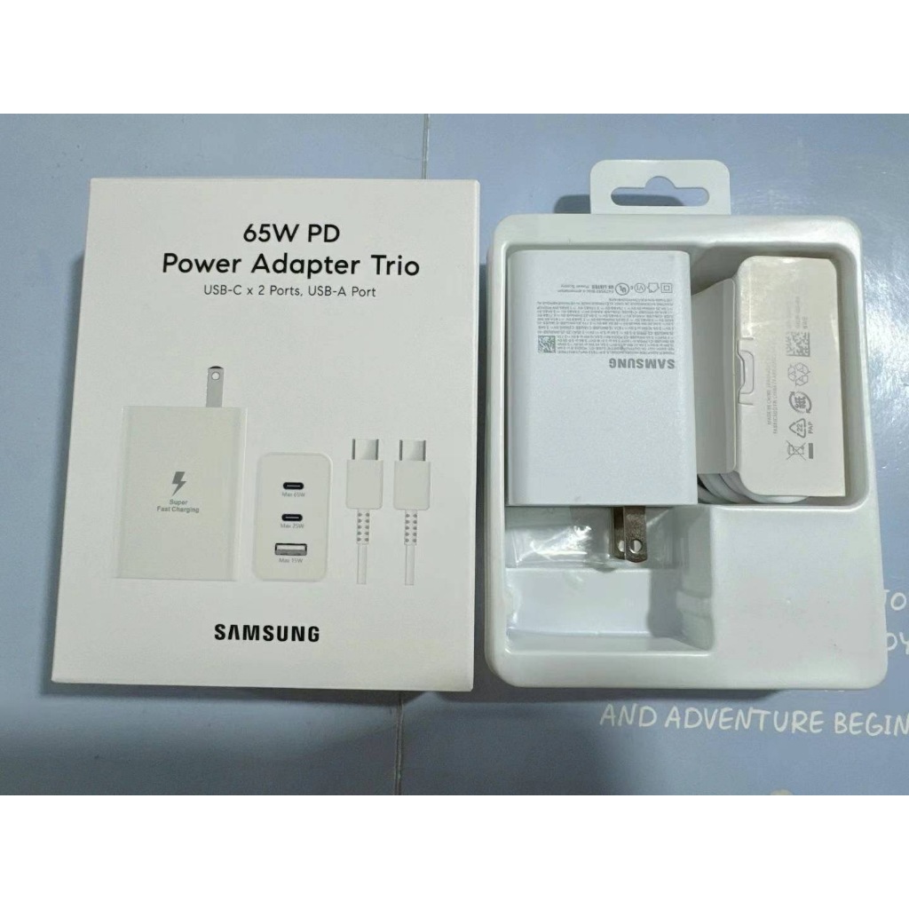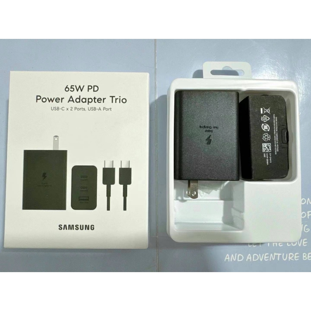 Samsung 65W Fast Charging PD Power Charger Trio W/C To C Cable(USB-C 2 Ports/ USB A 1Port)