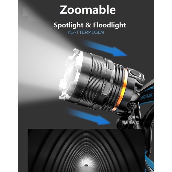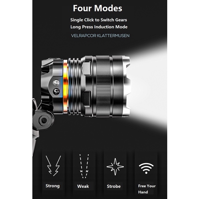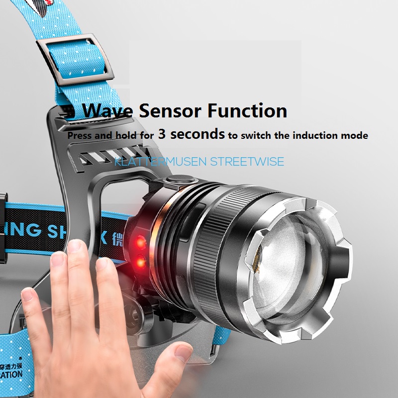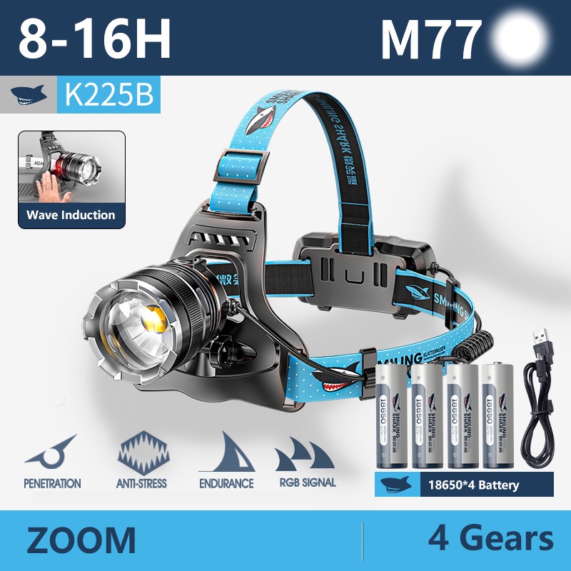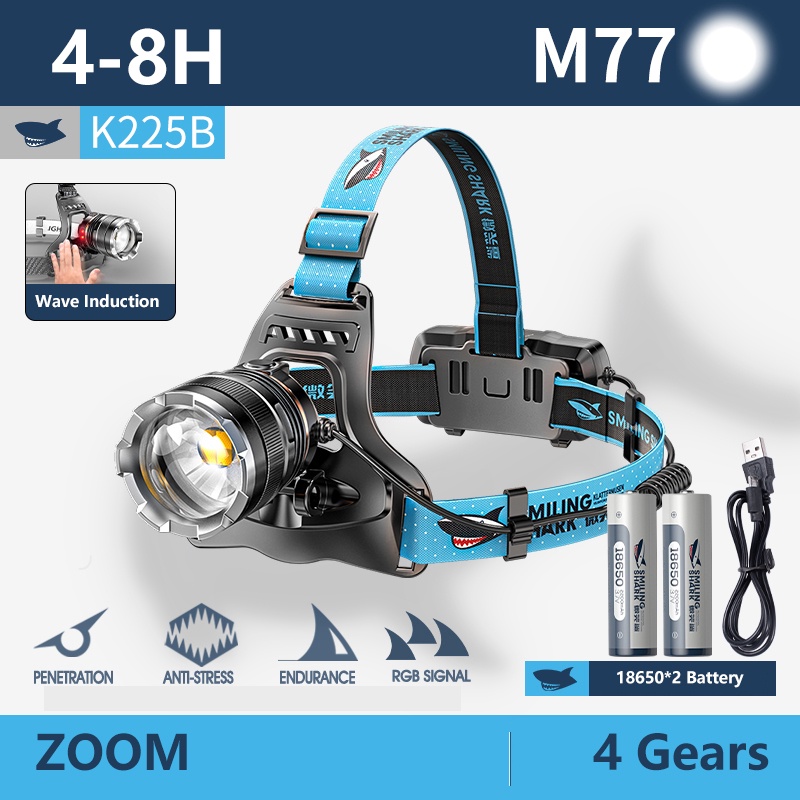 Smiling Shark K225 Headlight Flashlight Led M77 5000LM Headlamp Long Shot 1000M with Sensor Head Light 18650 Usb Rechargeable Head Lamp Waterproof Outdoor Camping Fishing Hiking Brown Hiker Emergency Lighting